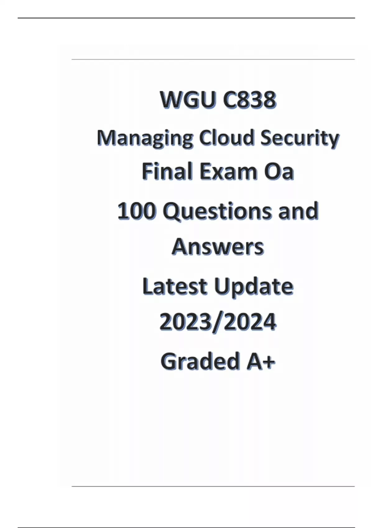 WGU C838 MANAGING CLOUD SECURITY FINAL EXAM OA 100 QUESTIONS AND ANSWERS LATEST 2023/2024