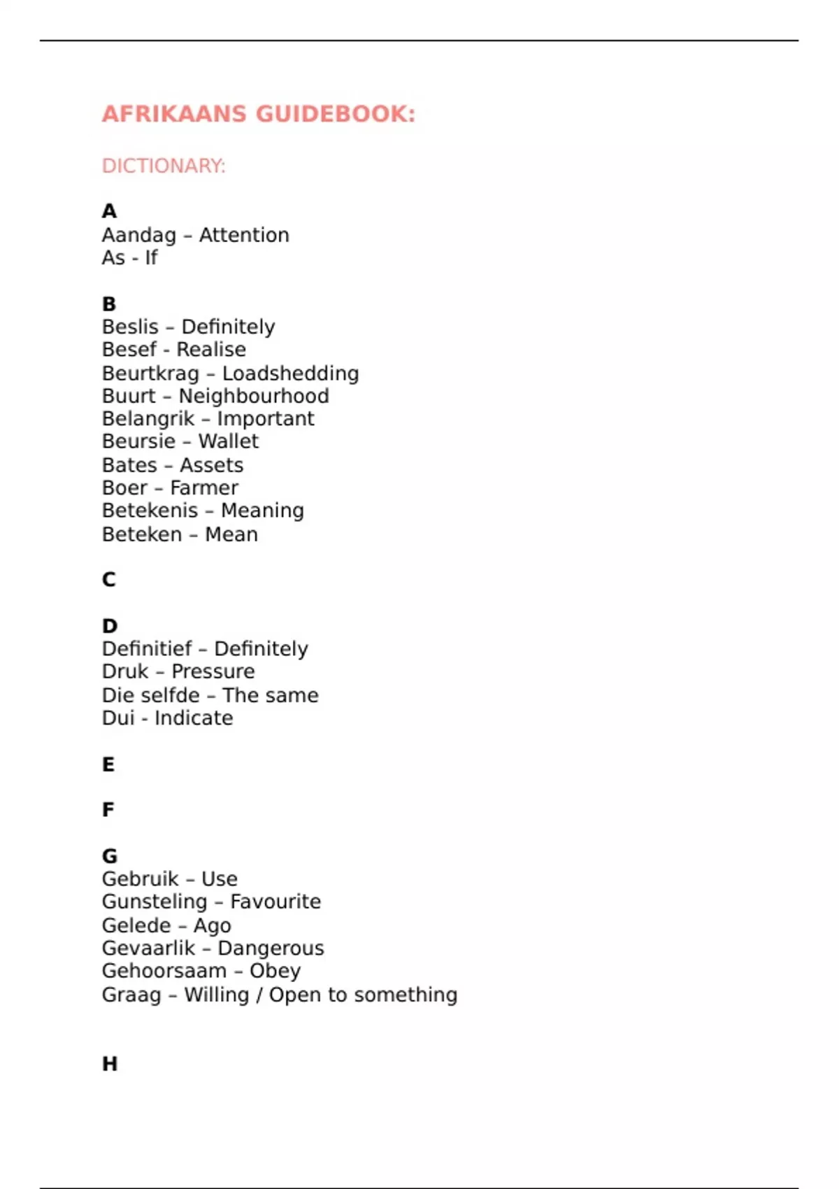 AFRIKAANS GUIDEBOOK:
