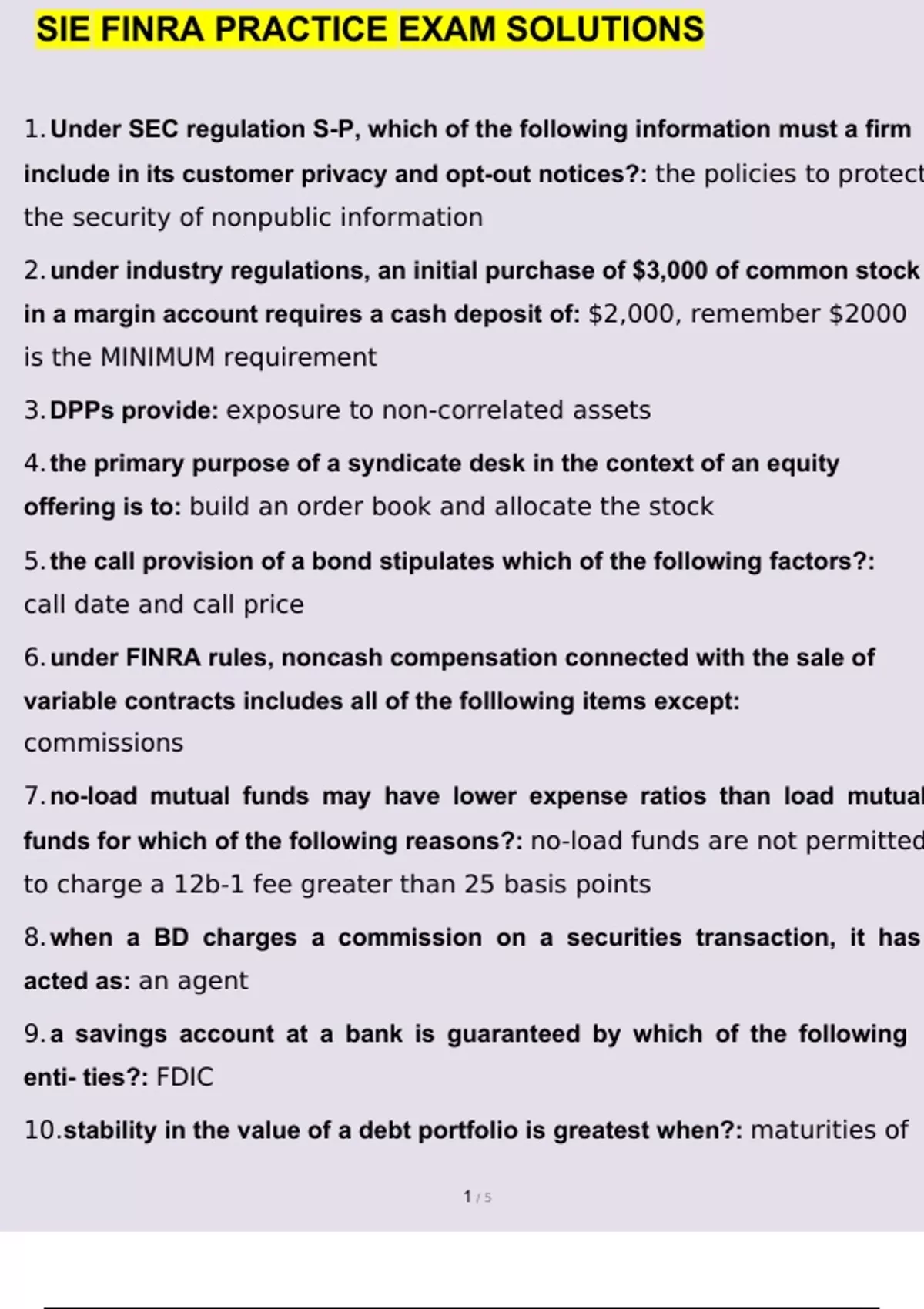 SIE FINRA PRACTICE EXAM SOLUTIONS QUESTIONS AND ANSWERS A+ VERIFIED