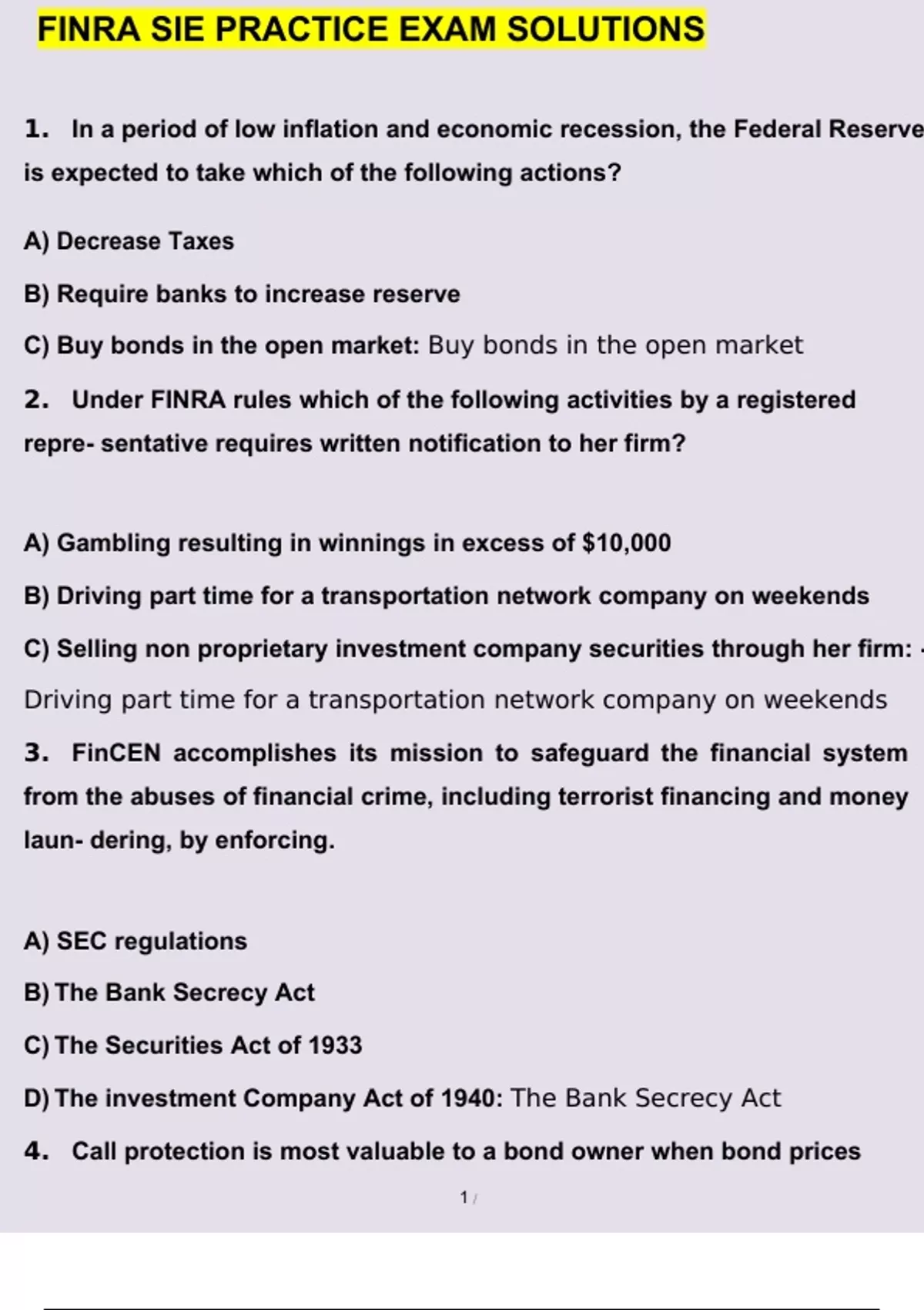 FINRA SIE PRACTICE EXAM SOLUTIONS QUESTIONS AND ANSWERS A+ VERIFIED