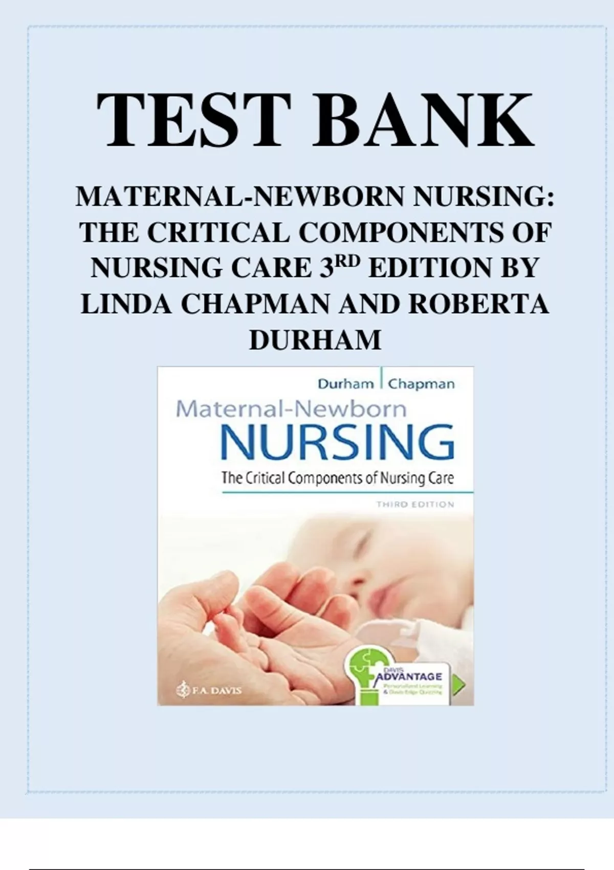 TEST BANK MATERNAL-NEWBORN NURSING- THE CRITICAL COMPONENTS OF NURSING CARE 3RD EDITION BY ROBERTA DURHAM AND LINDA CHAPMAN Latest Verified Review 2023 Practice Questions and Answers for Exam Preparation, 100% Correct with Explanations, Highly Recommended