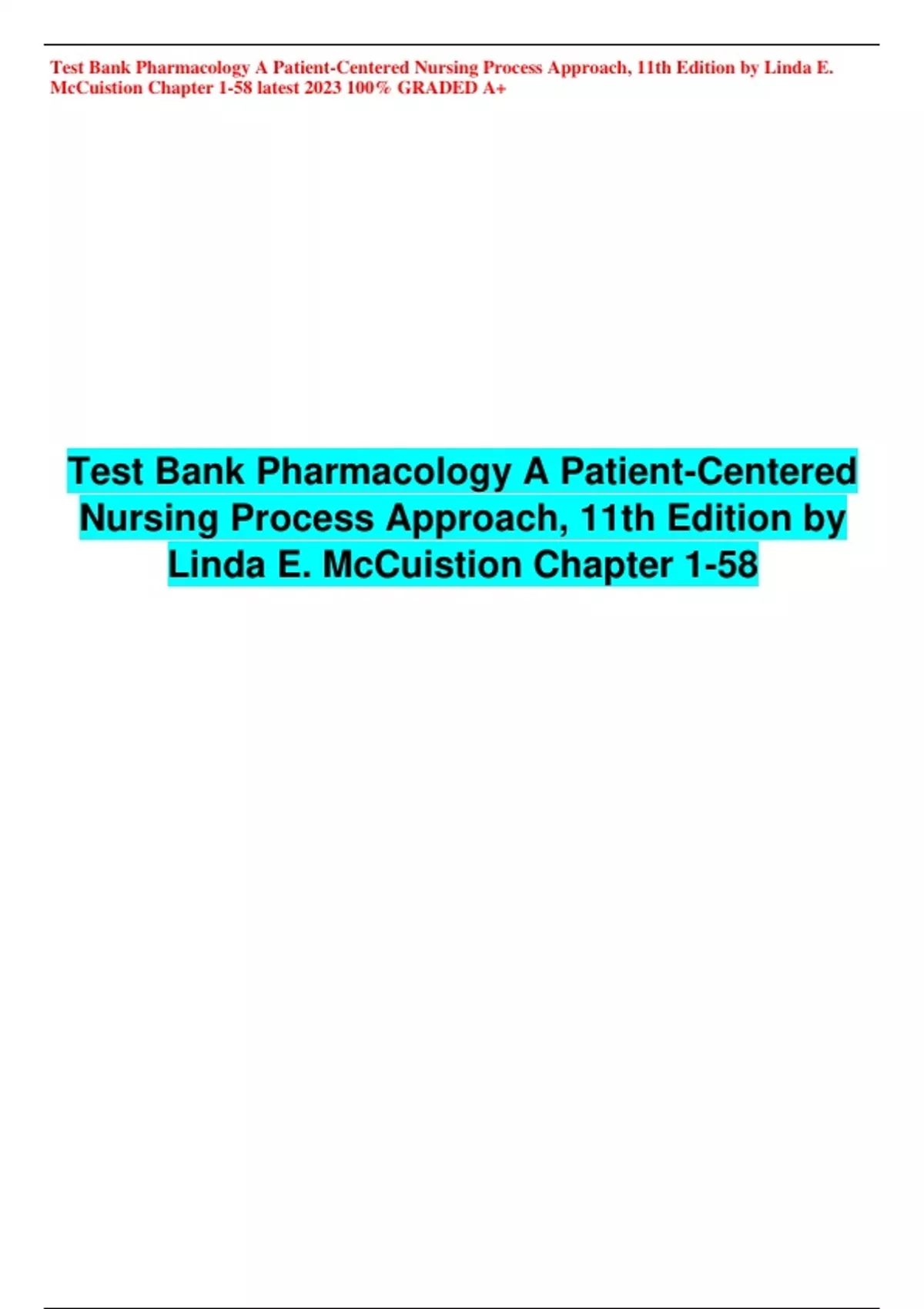 Test Bank Pharmacology A Patient-Centered Nursing Process Approach, 11th Edition by Linda E. McCuistion Chapter 1-58 latest 2023 100% GRADED A+