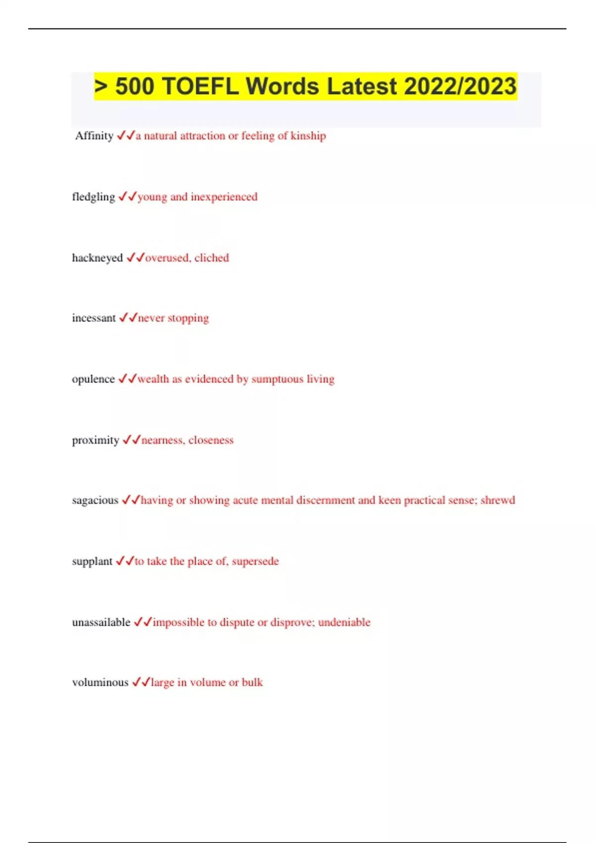 > 500 TOEFL Words Latest 2022/2023