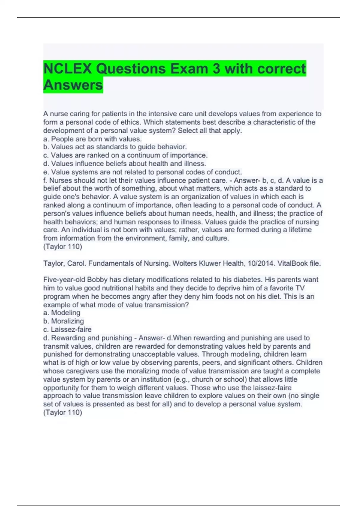 NCLEX Questions Exam 3 with correct Answers