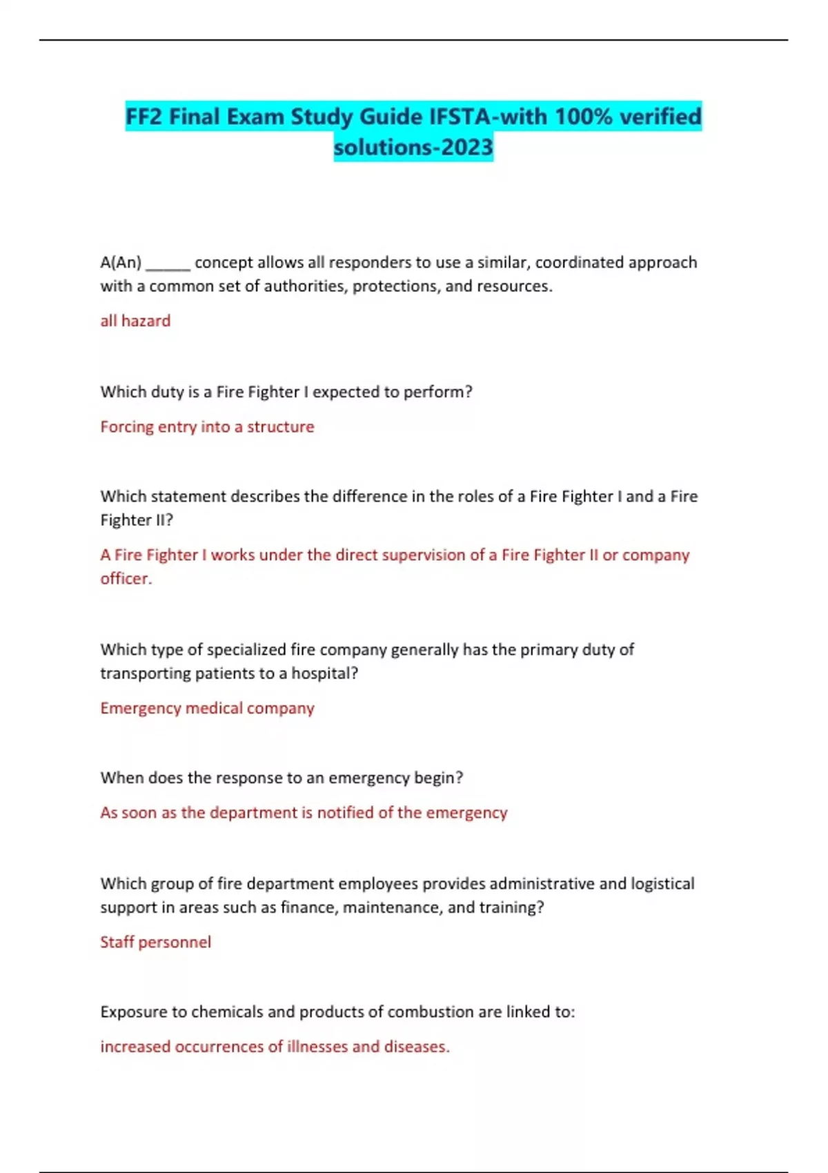 FF2 Final Exam Study Guide IFSTA-with 100% verified solutions-2023