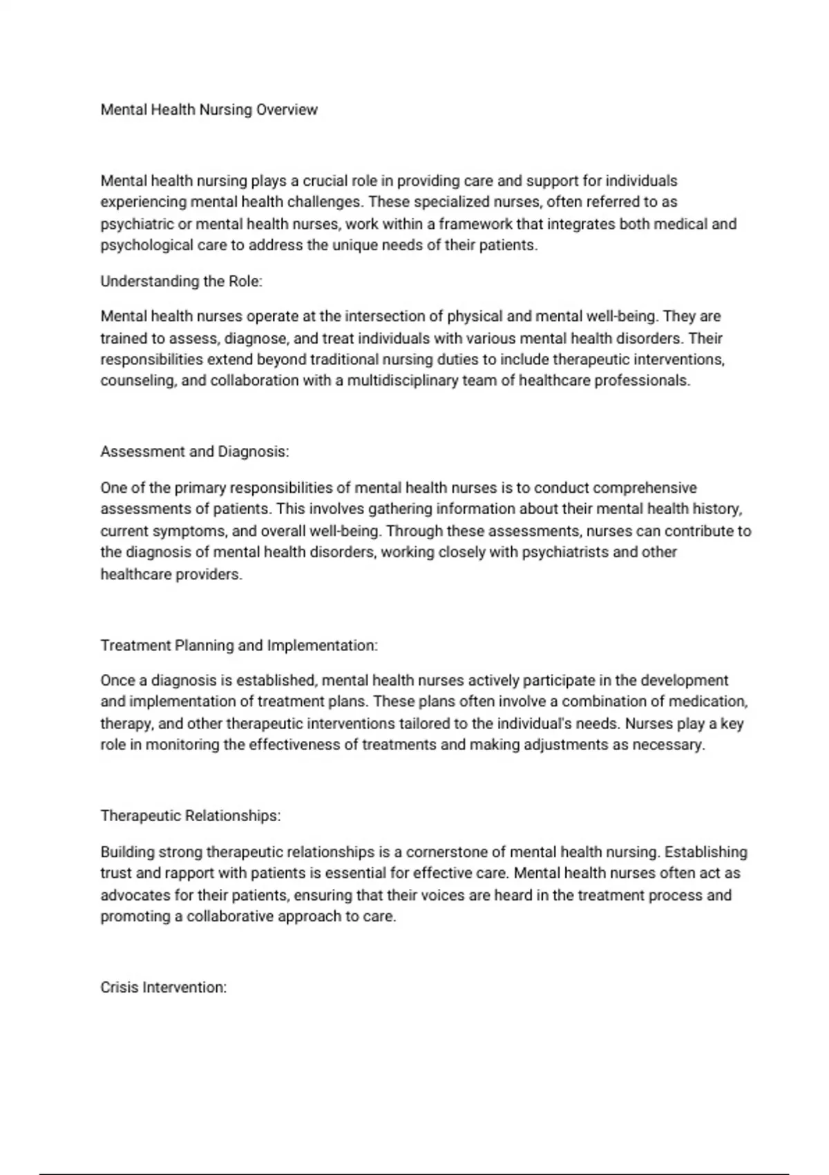 Mental Health Nursing Overview