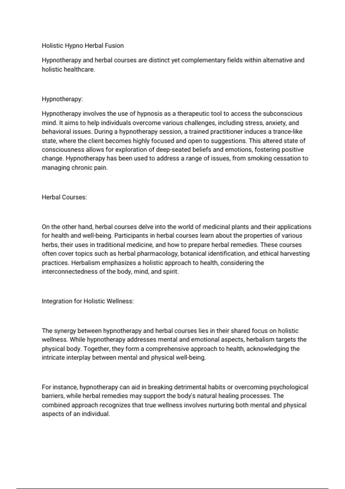 Holistic Hypno Herbal Fusion