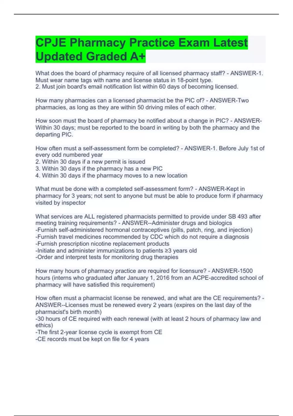 CPJE Pharmacy Practice Exam Latest Updated Graded A+