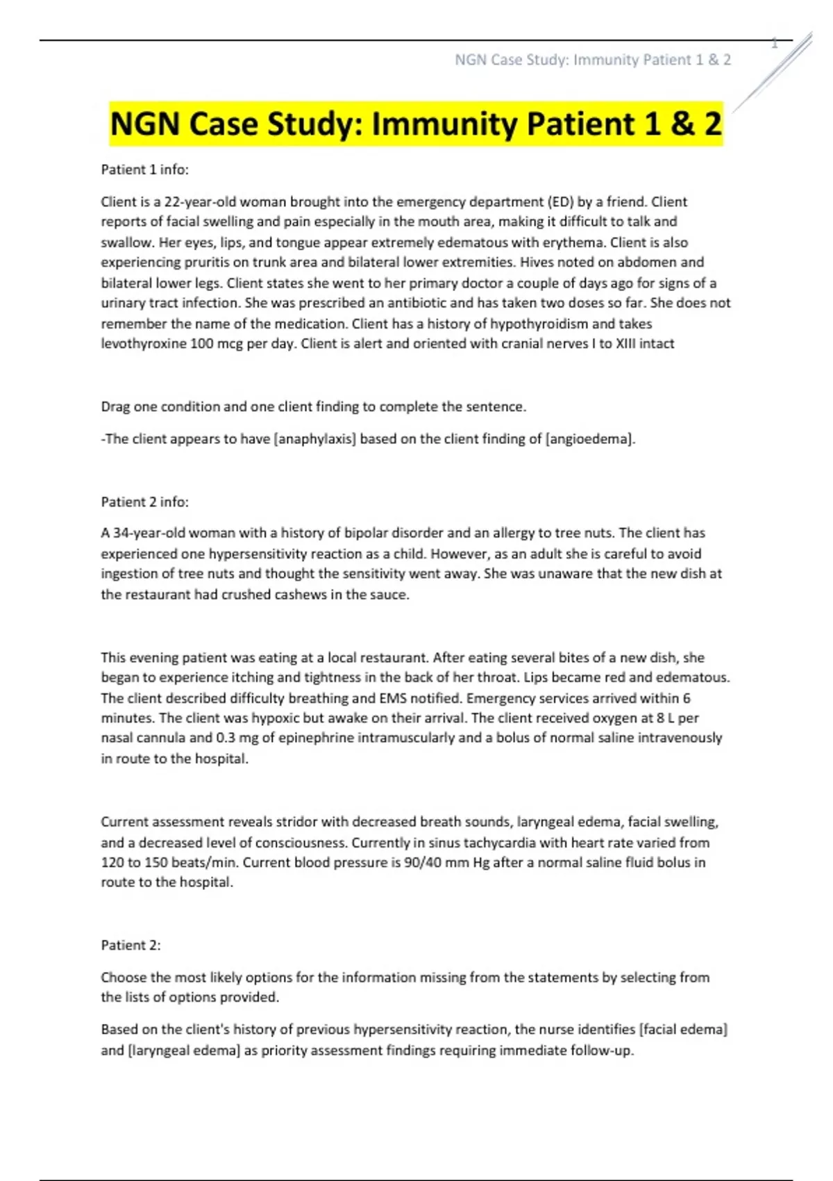 NGN Case Study: Immunity Patient 1 & 2