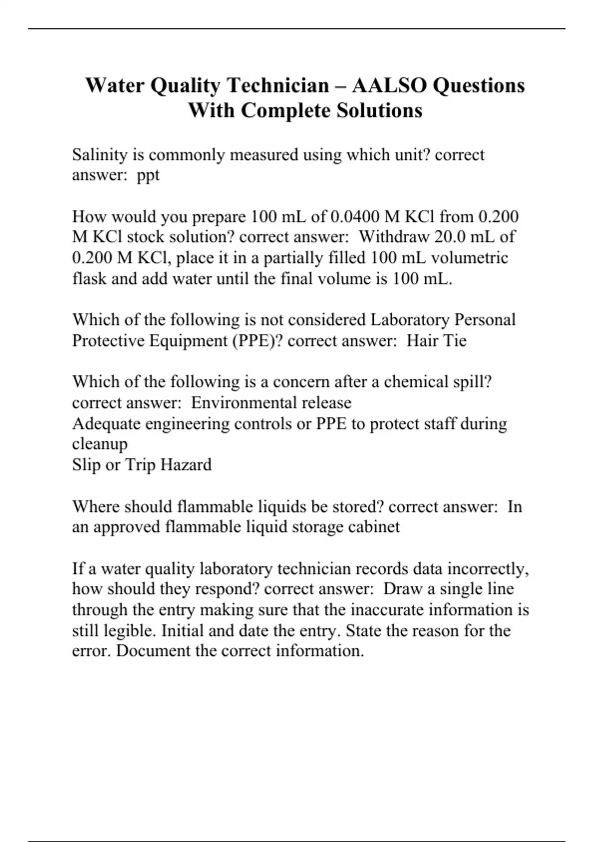 Water Quality Technician – AALSO Questions With Complete Solutions