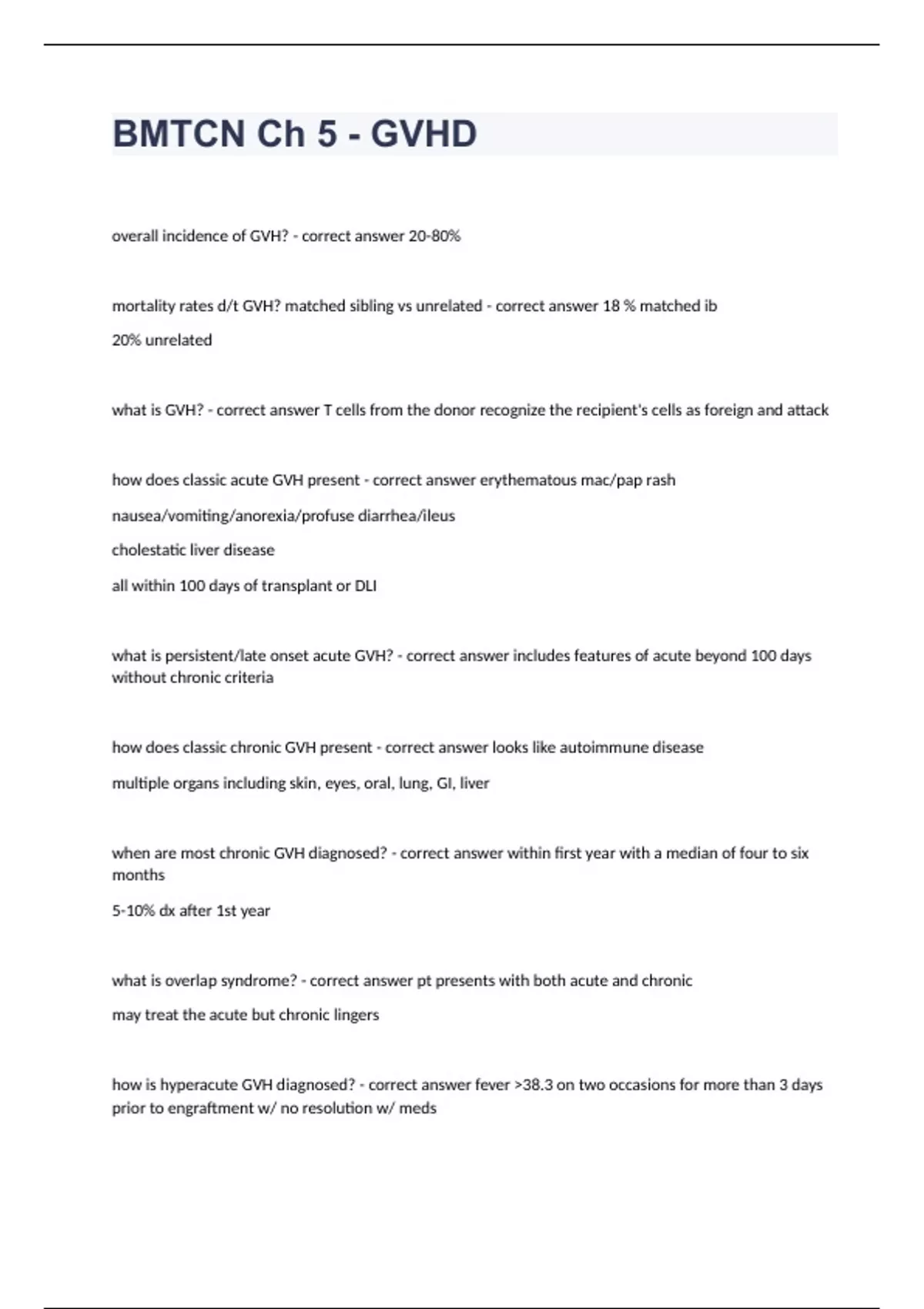 BMTCN Ch 5 - GVHD question fully solved graded A+ 2023/2024