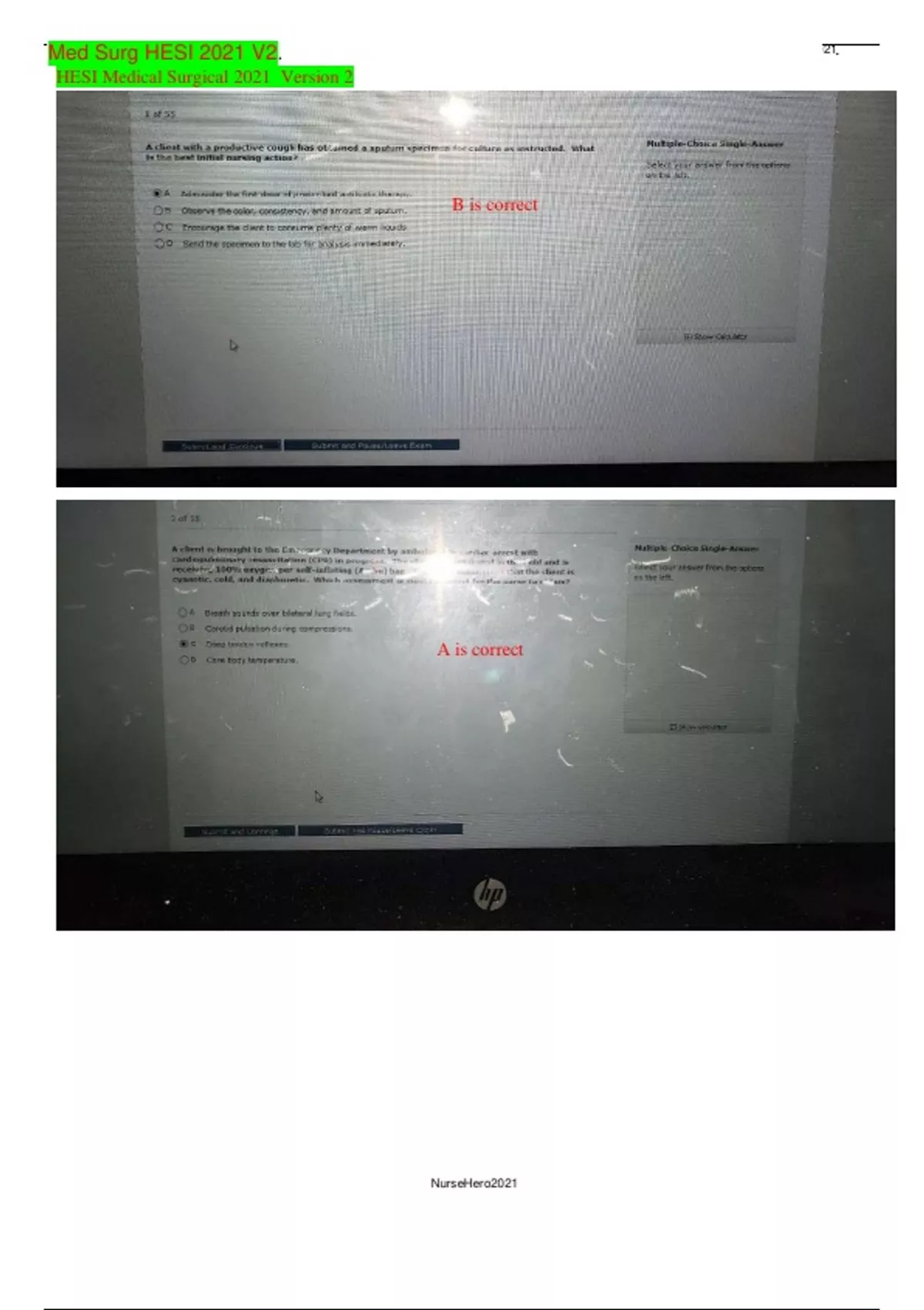 This document is the V2 of HESI RN Med Surg 2021/2022. It includes 55 questions that are answered. Please don't hesitate to ask if you have any questions as this type of digital sale is non-refundable and non-returnable at all. If you have a problem downloading the data, just send me your email wit...