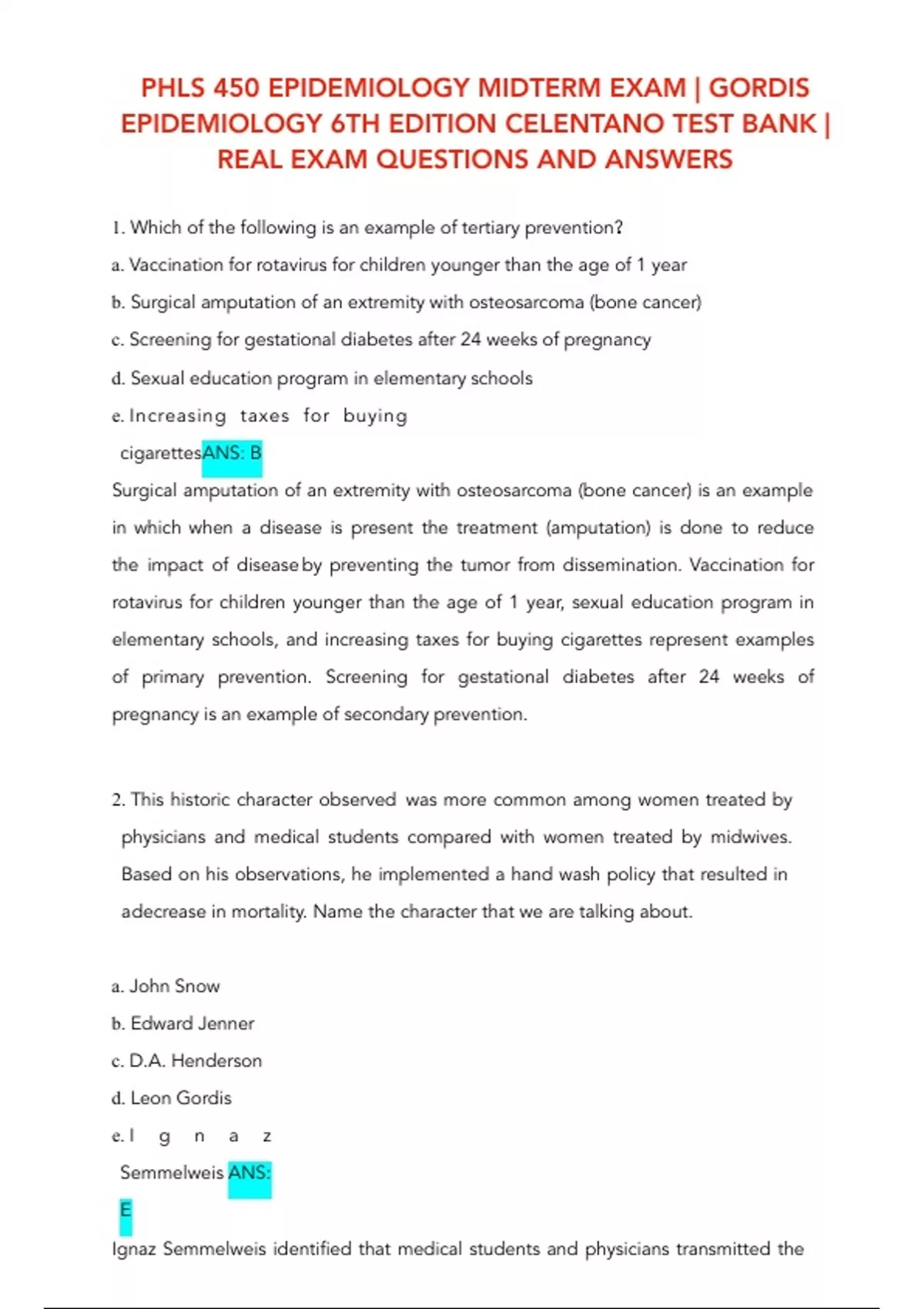 Test Bank For Gordis Epidemiology 6th Edition By David D Celentano; Moyses Szklo 9780323552295 Chapter 1-20 Complete Guide .