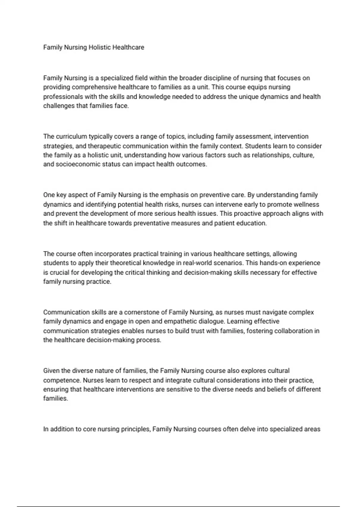 Family Nursing Holistic Healthcare