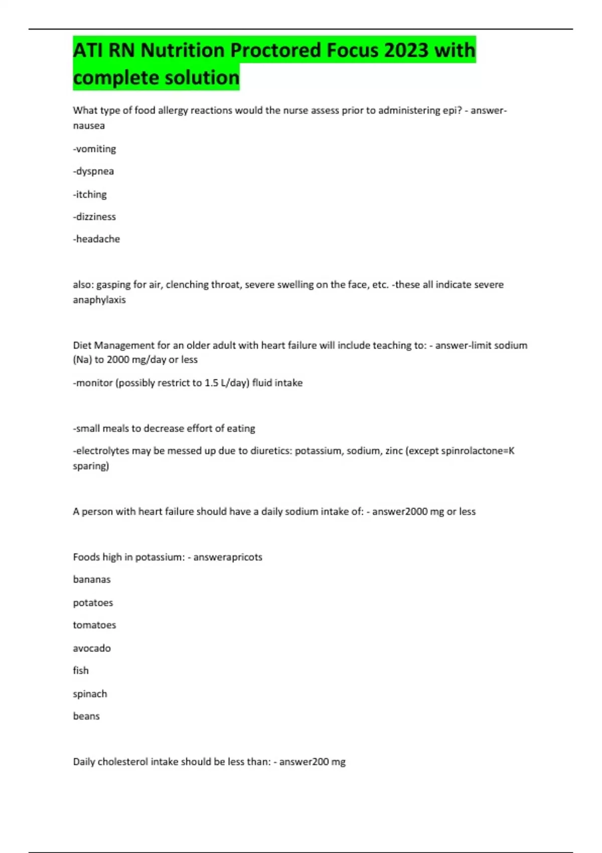 ATI RN Nutrition Proctored Focus 2023 with complete solution
