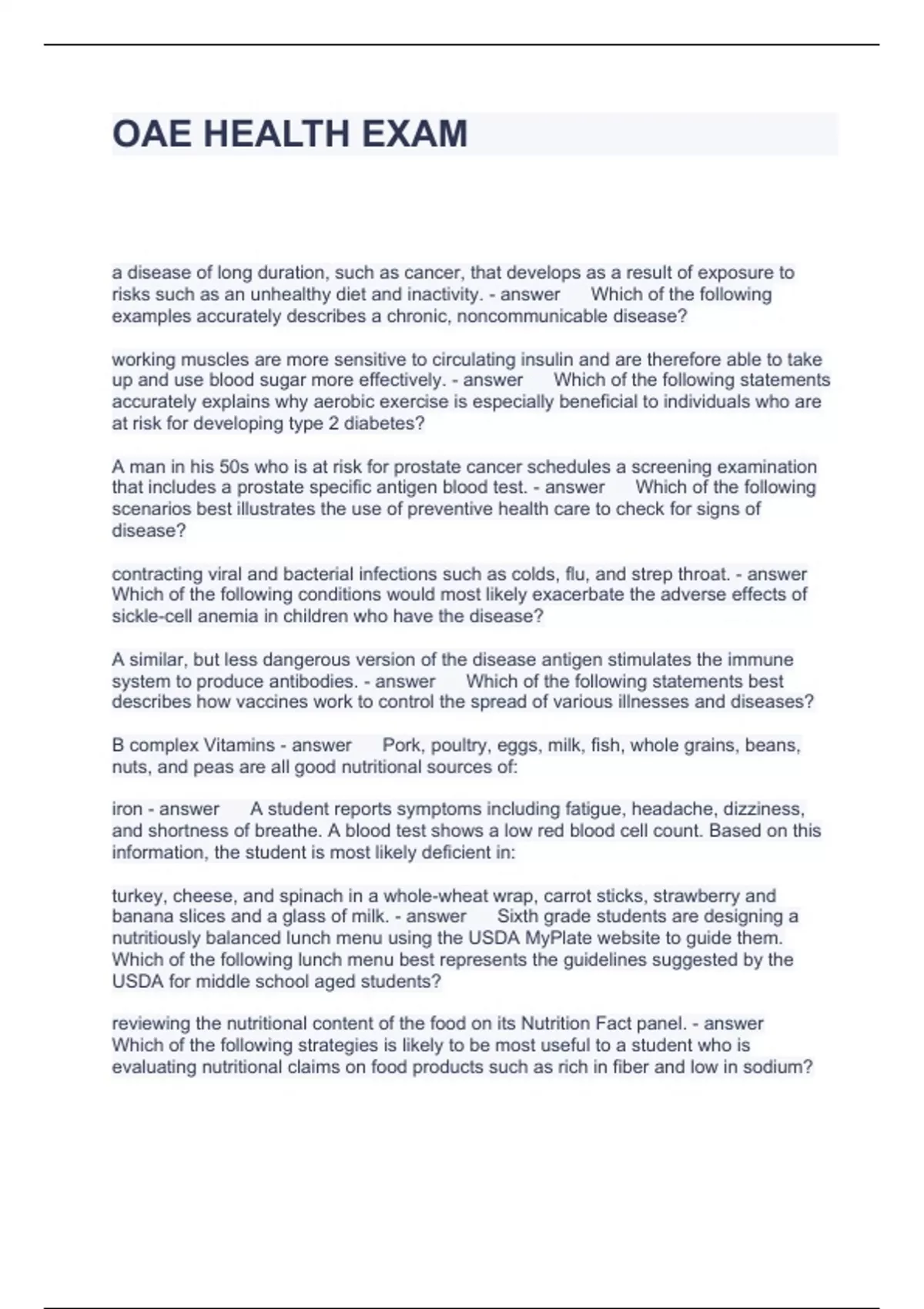 OAE HEALTH EXAM Questions with correct Answers 2023