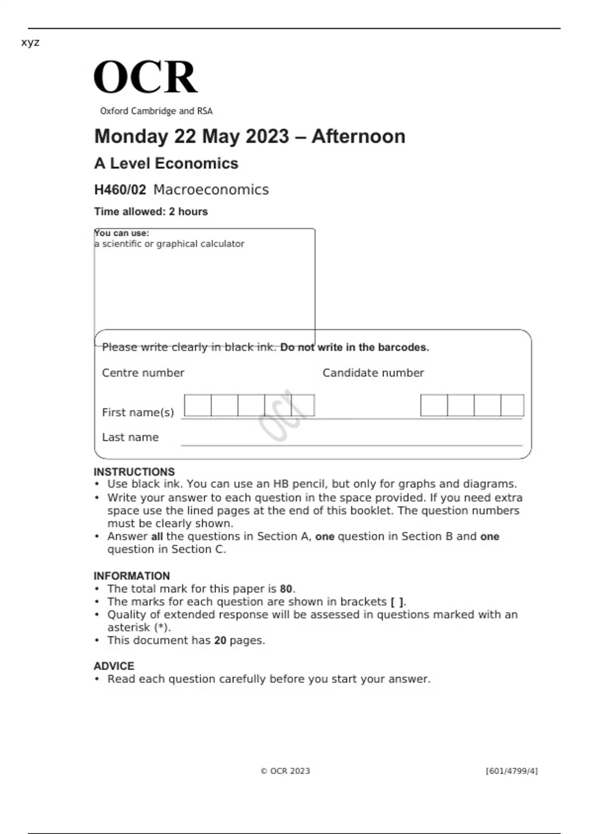 OCR A Level Economics H460/02 JUNE 2023 QUESTION PAPER: Macroeconomics