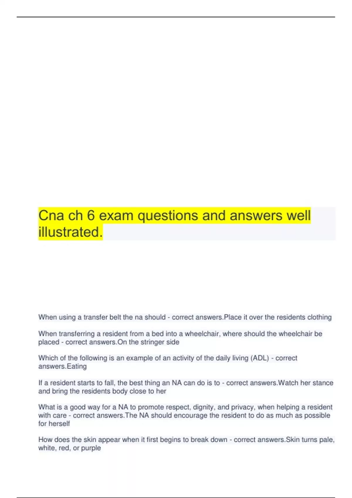 Cna ch 6 exam questions and answers well illustrated