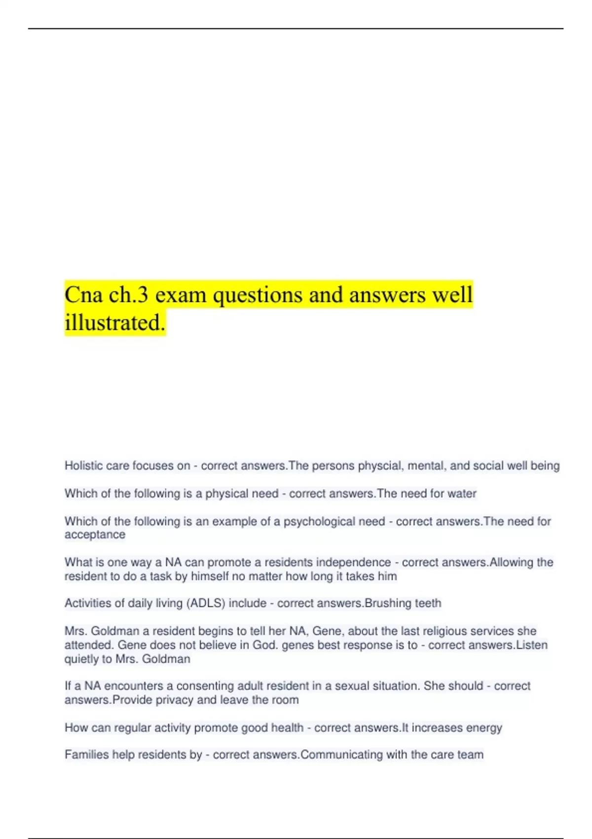 Cna ch.3 exam questions and answers well illustrated.