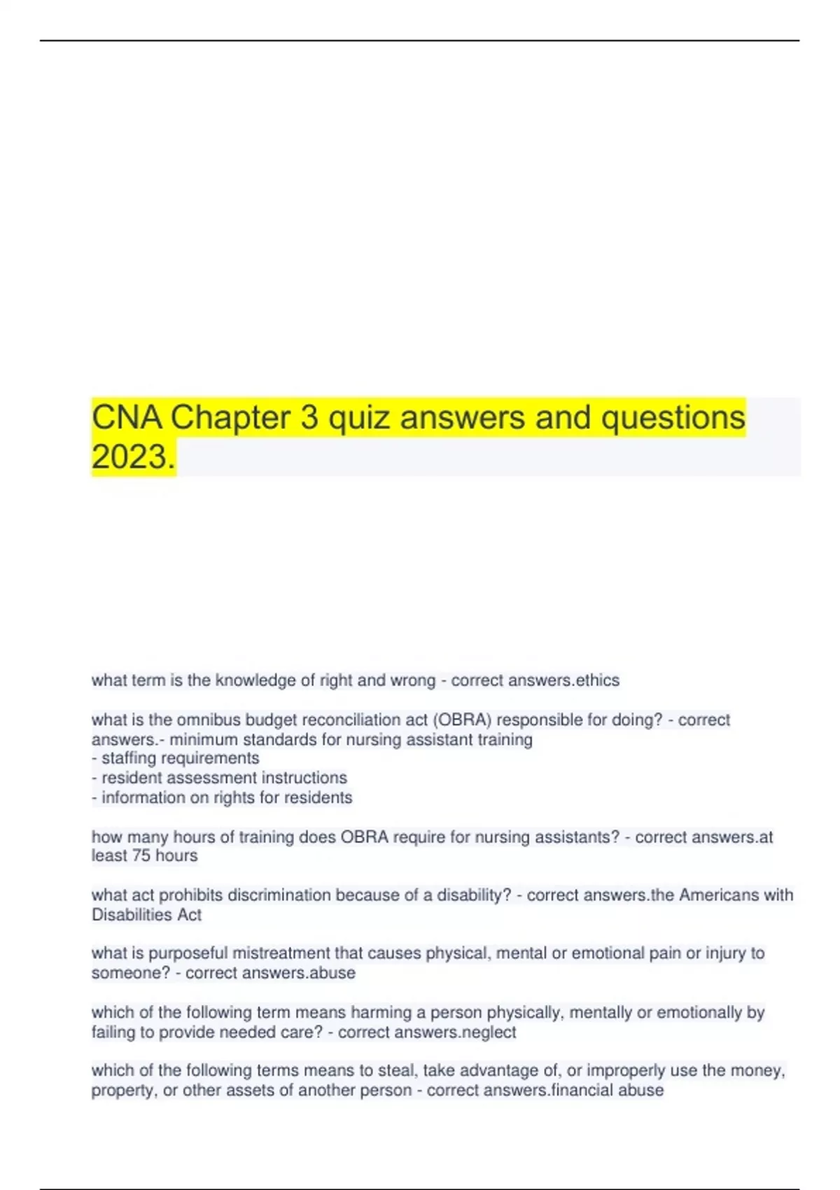 CNA Chapter 3 quiz answers and questions 2023.
