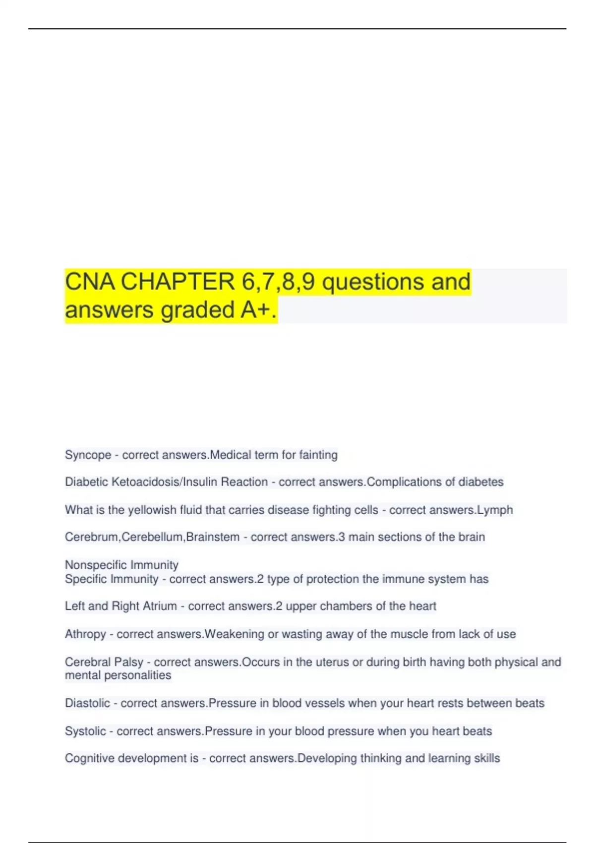 CNA CHAPTER 6,7,8,9 questions and answers graded A+.