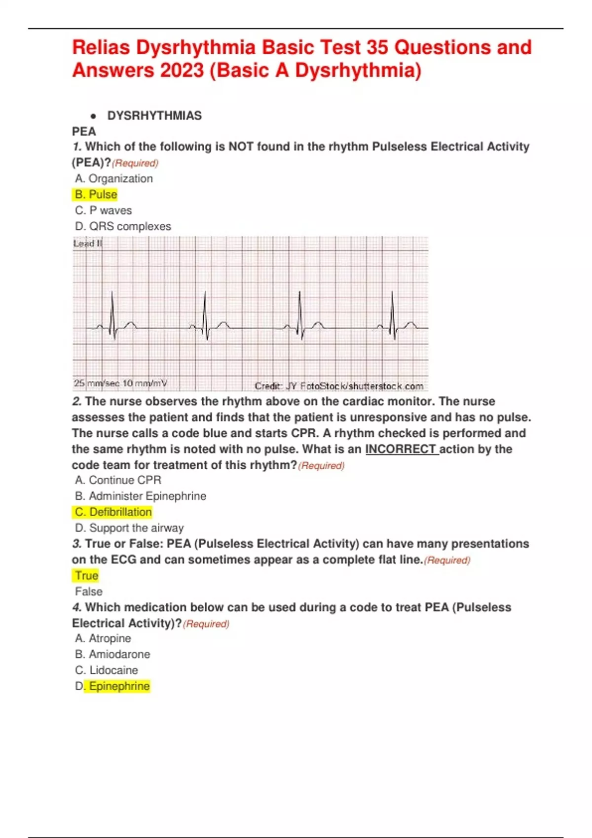,Relias Dysrhythmia Basic Test 35 Questions and