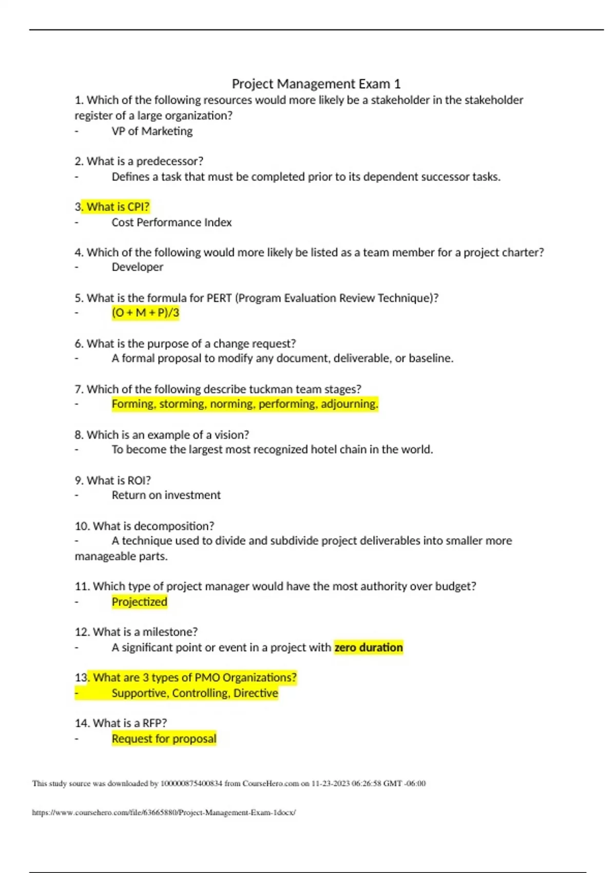 - project management exam 1