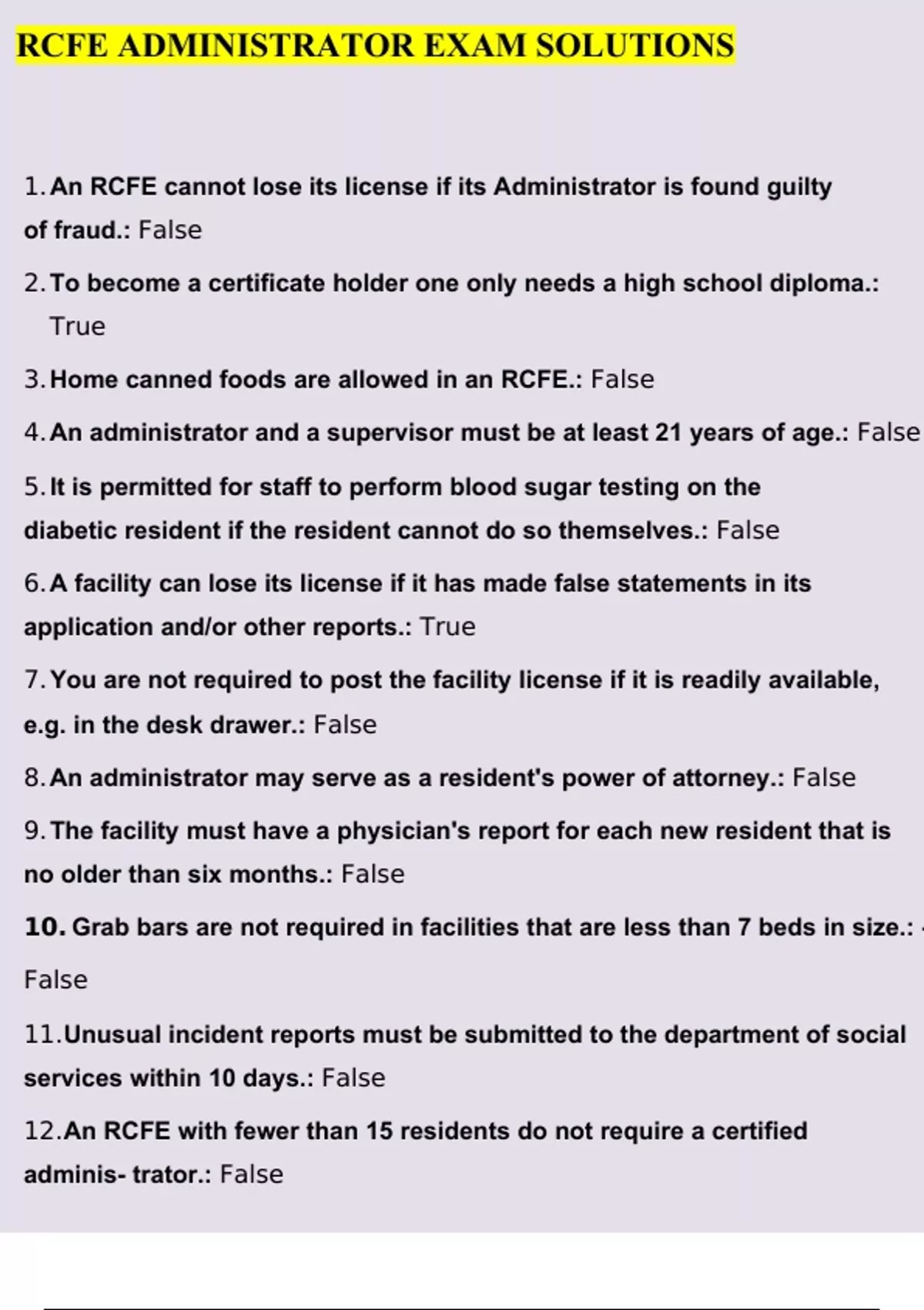 RCFE ADMINISTRATOR EXAM SOLUTIONS QUESTIONS AND ANSWERS A+ VERIFIED