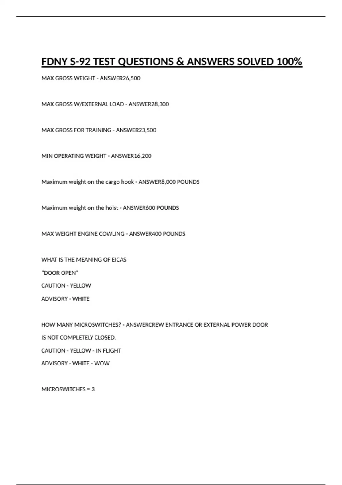 FDNY S-92 TEST QUESTIONS & ANSWERS SOLVED 100%