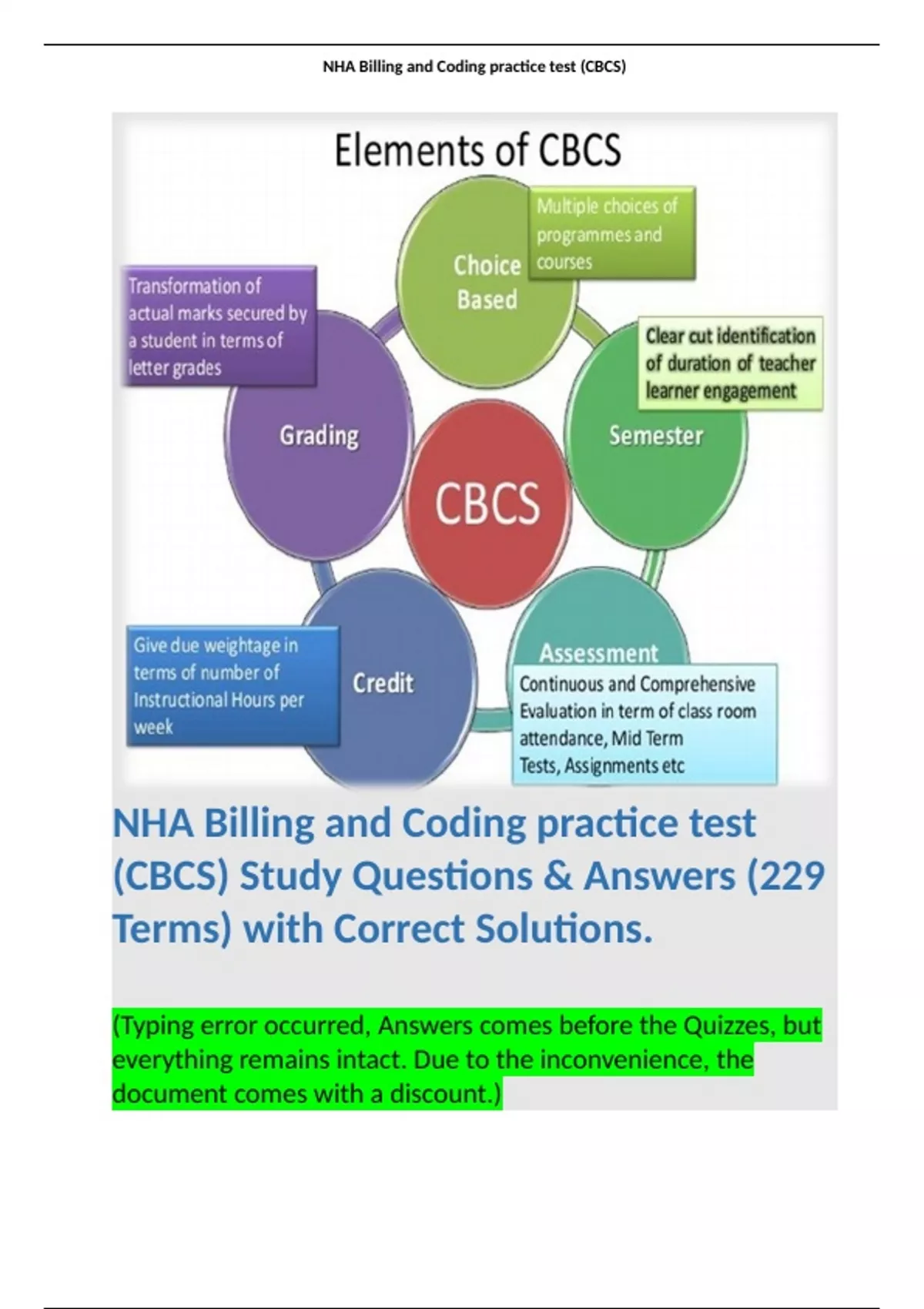 NHA Billing and Coding practice test (CBCS) Study Questions & Answers (229 Terms) with Correct Solutions.