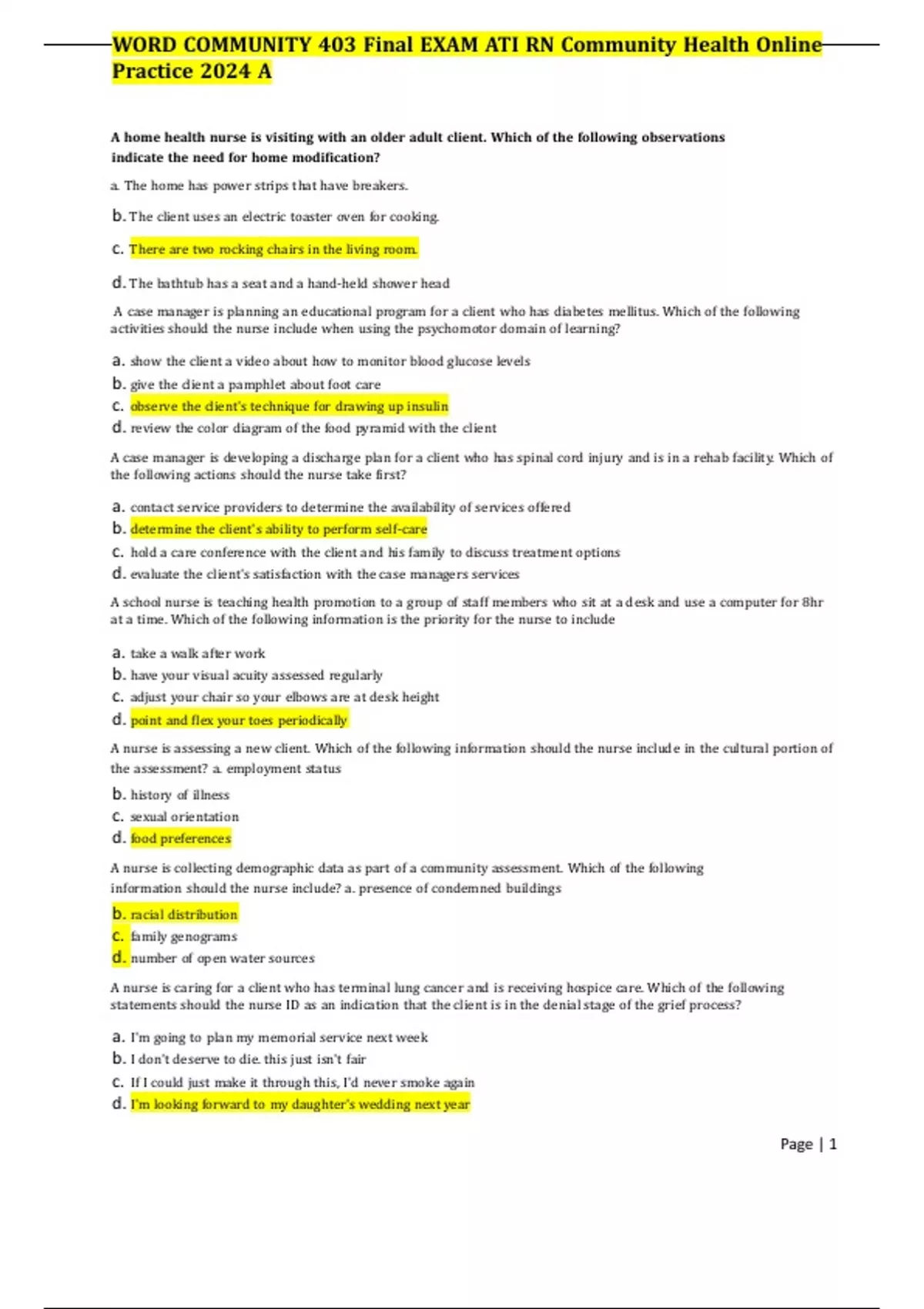 WORD COMMUNITY 403 Final EXAM ATI RN Community Health Online Practice 2024 A
