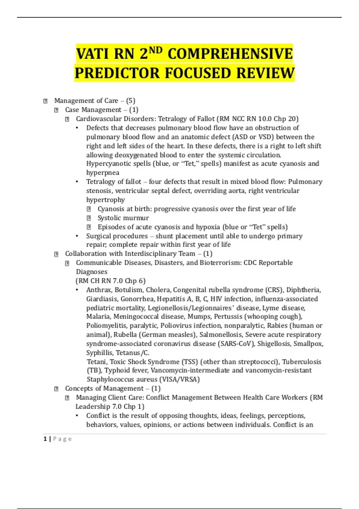 VATI RN 2ND COMPREHENSIVE PREDICTOR FOCUSED REVIEW