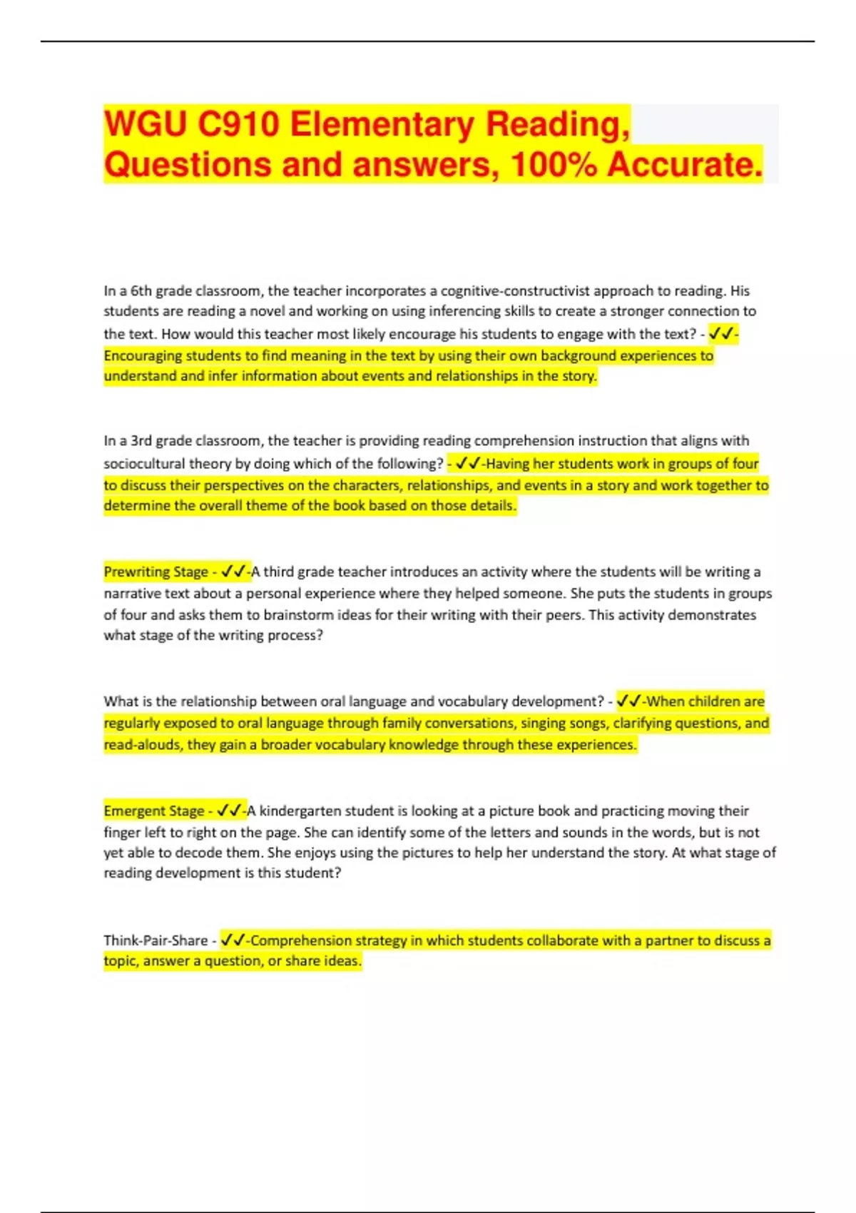 WGU C910 Elementary Reading, Questions and answers, 100% Accurate