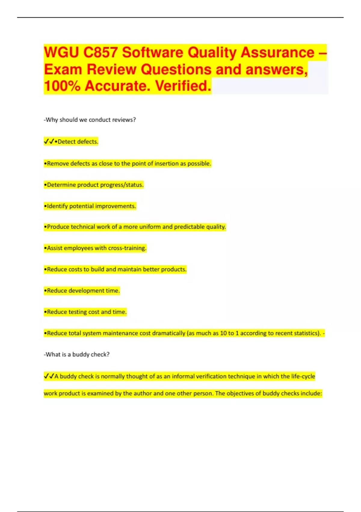 WGU C857 Software Quality Assurance – Exam Review Questions and answers, 100% Accurate. Verified
