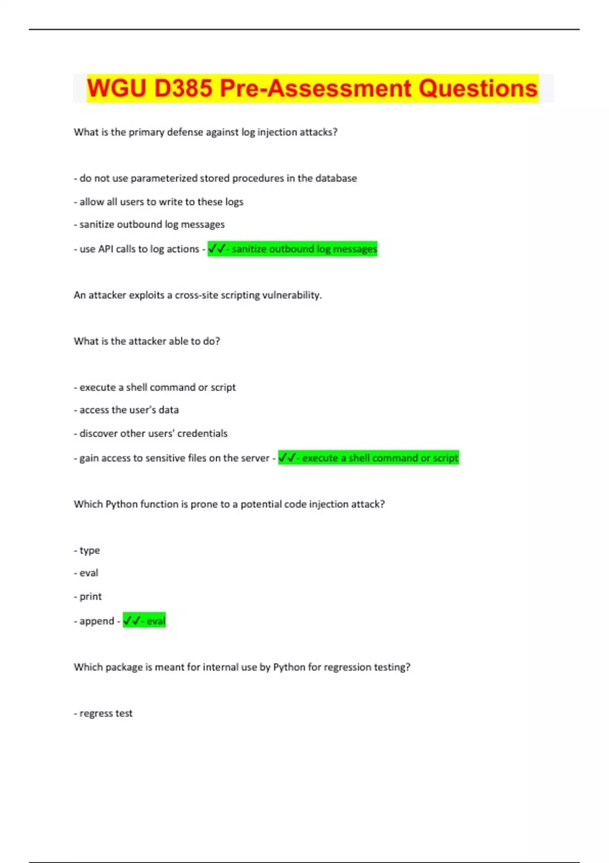 WGU D385 Pre-Assessment | Questions with 100% Correct Answers | Latest Update 2024 | Verified