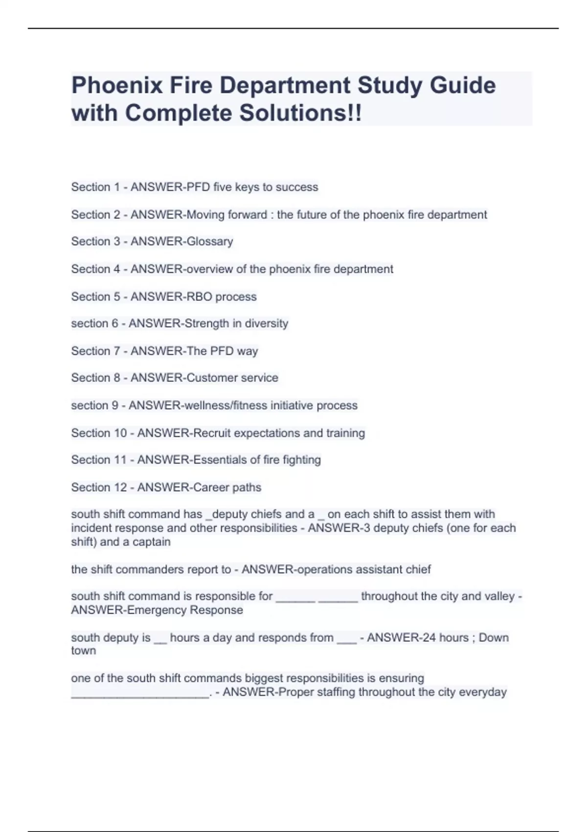 Phoenix Fire Department Study Guide with Complete Solutions!!