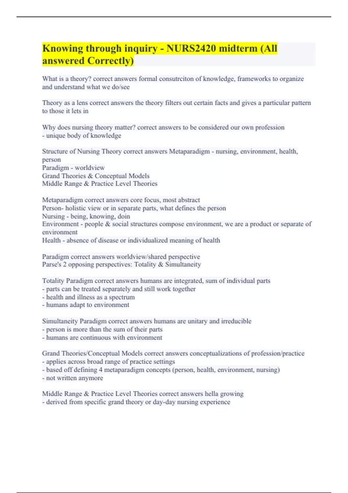 Knowing through inquiry - NURS2420 midterm (All answered Correctly)