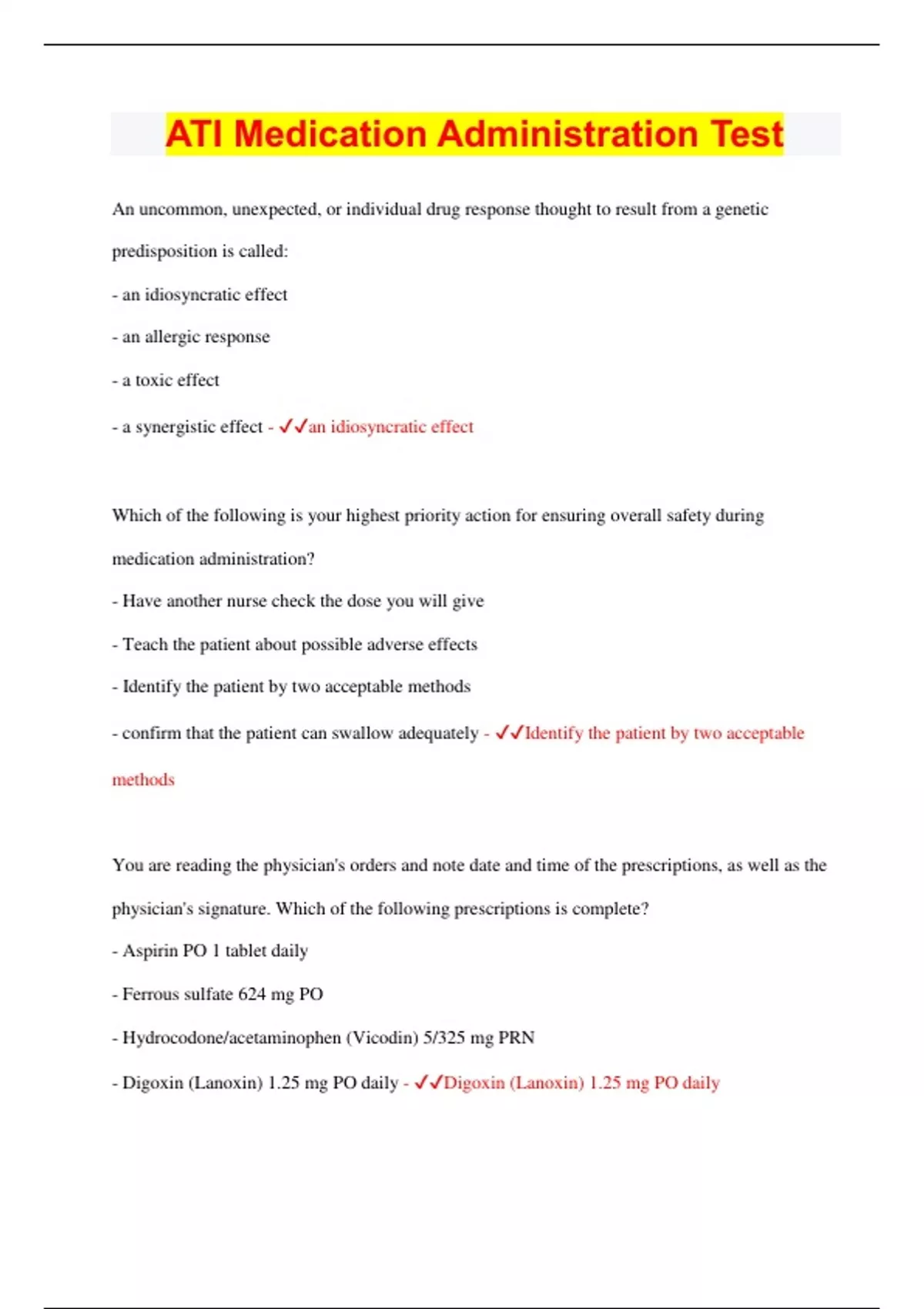 ATI Medication Administration Test | Questions with 100% Correct Answers | Latest Update 2024 | Verified