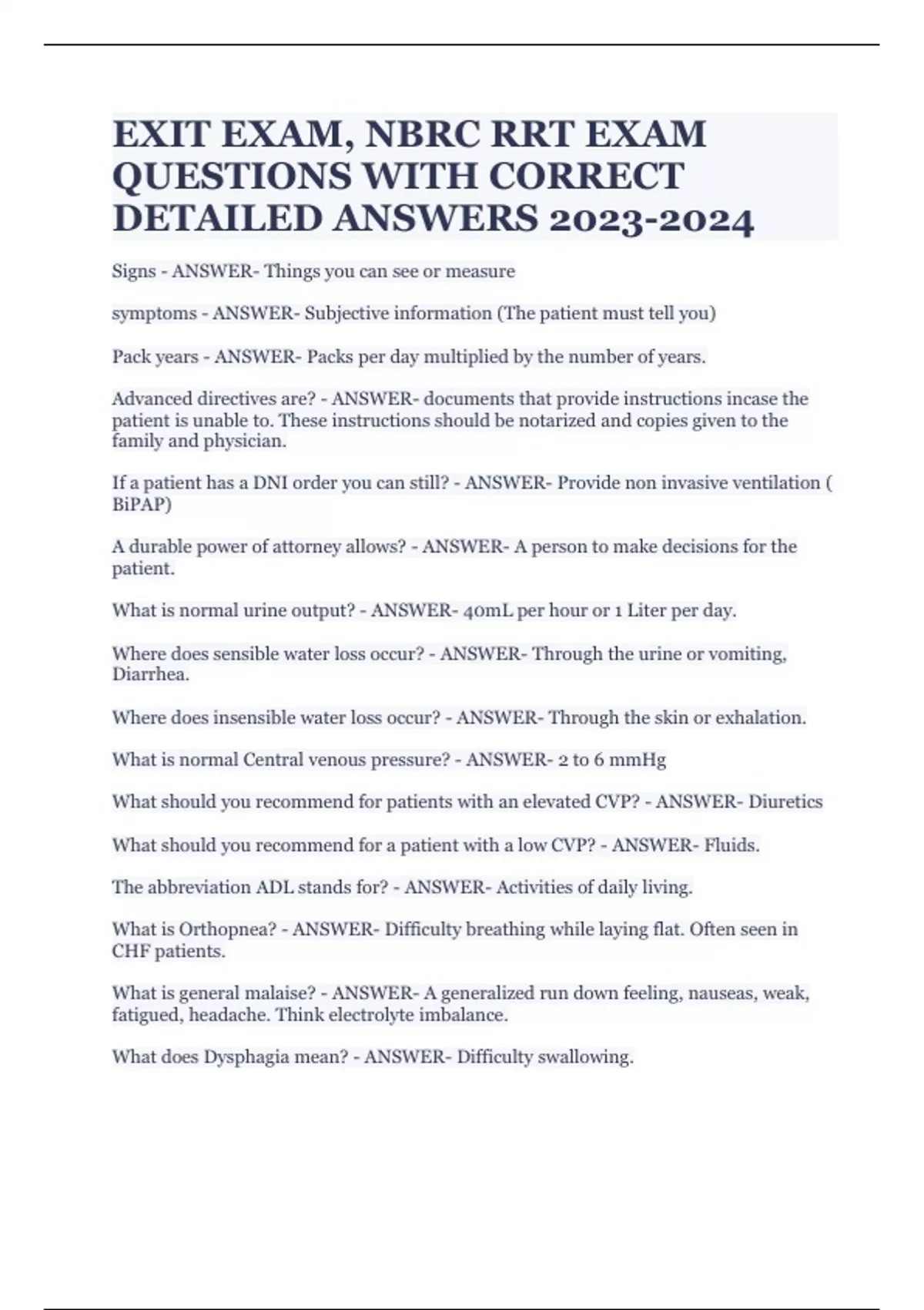 EXIT EXAM, NBRC RRT EXAM QUESTIONS WITH CORRECT DETAILED ANSWERS