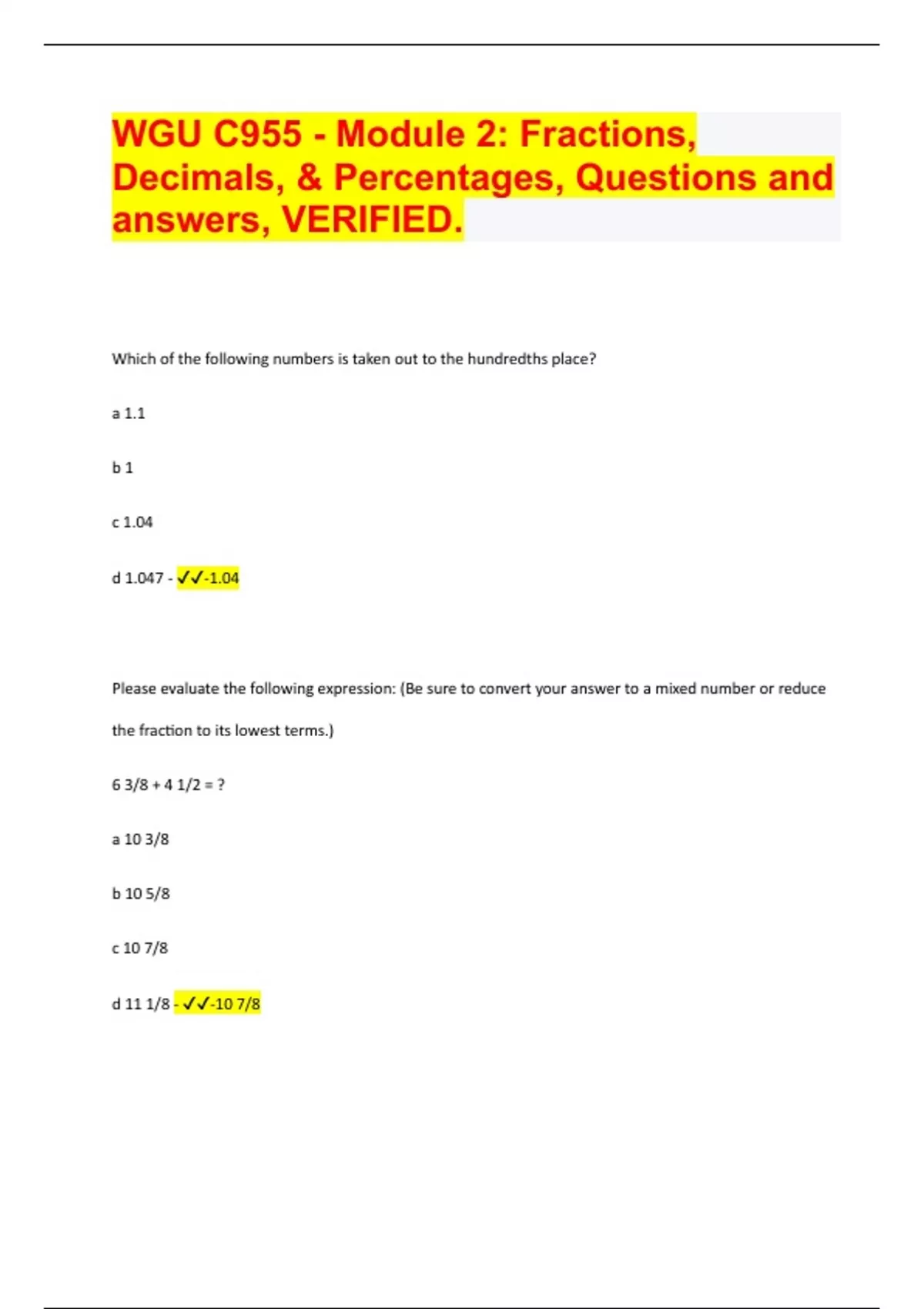 WGU C955 - Module 2: Fractions, Decimals, & Percentages, Questions and answers, VERIFIED | 22 pages