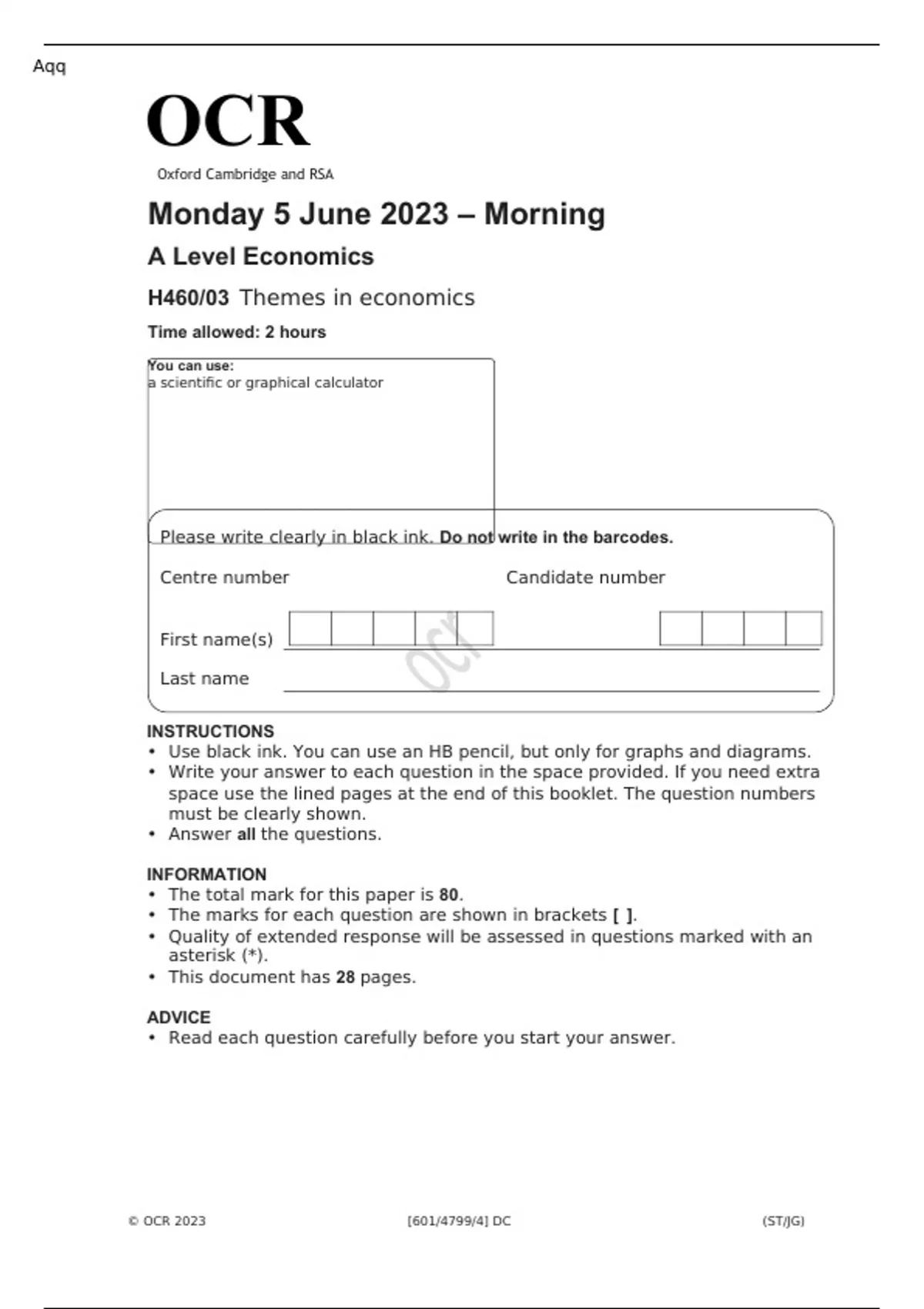 OCR A Level Economics H460/03 JUNE 2023 QUESTION PAPER: Themes in economics