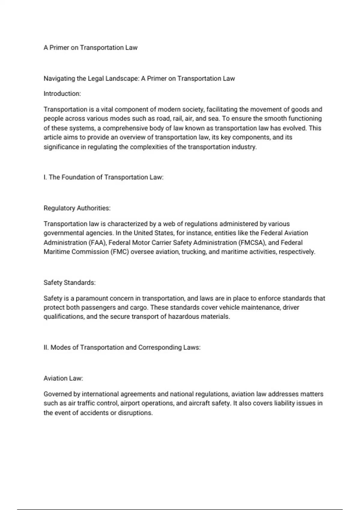 A Primer on Transportation Law