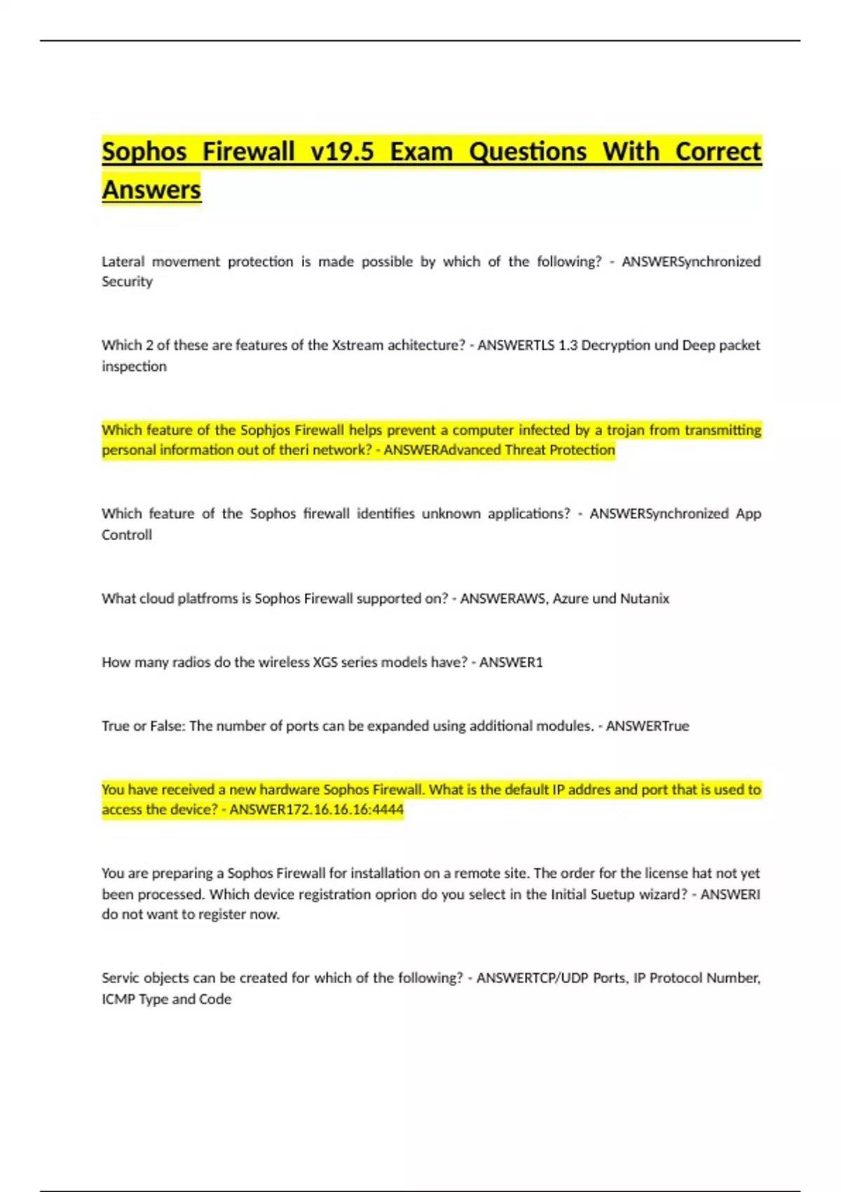 Sophos Firewall v19.5 Exam Questions With Correct Answers