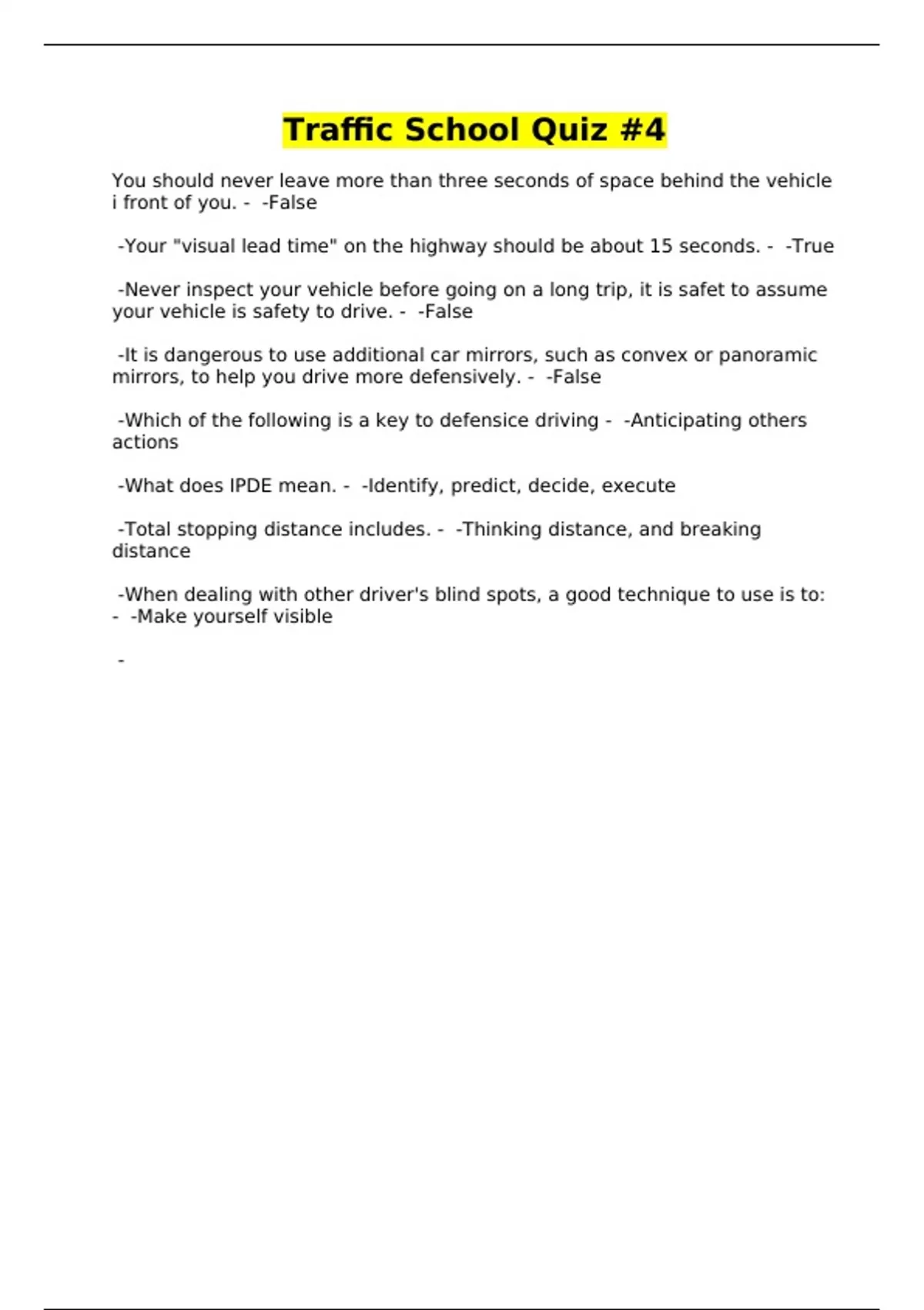 Traffic School Quiz #4