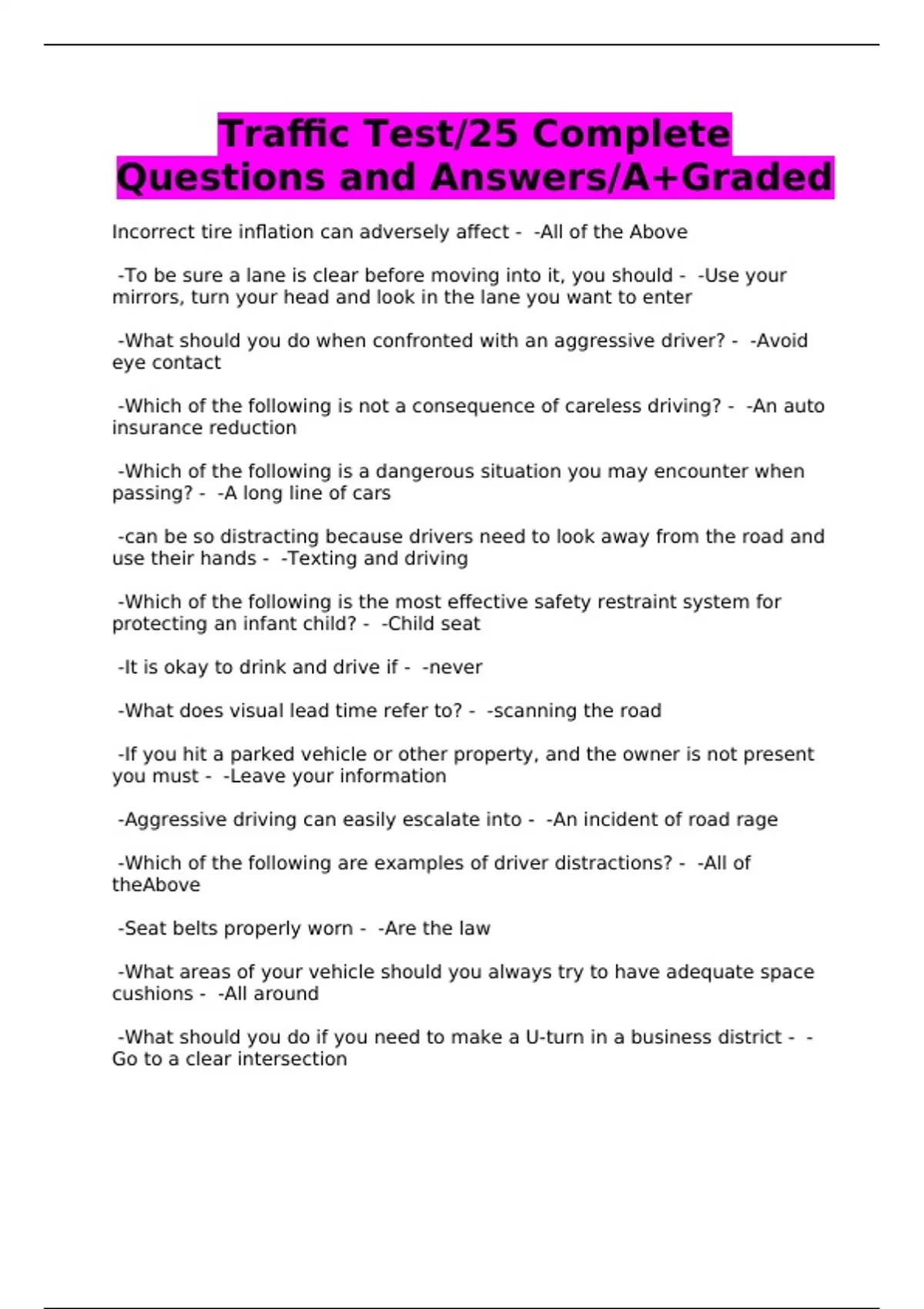 Traffic Test/25 Complete Questions and Answers/A+Graded