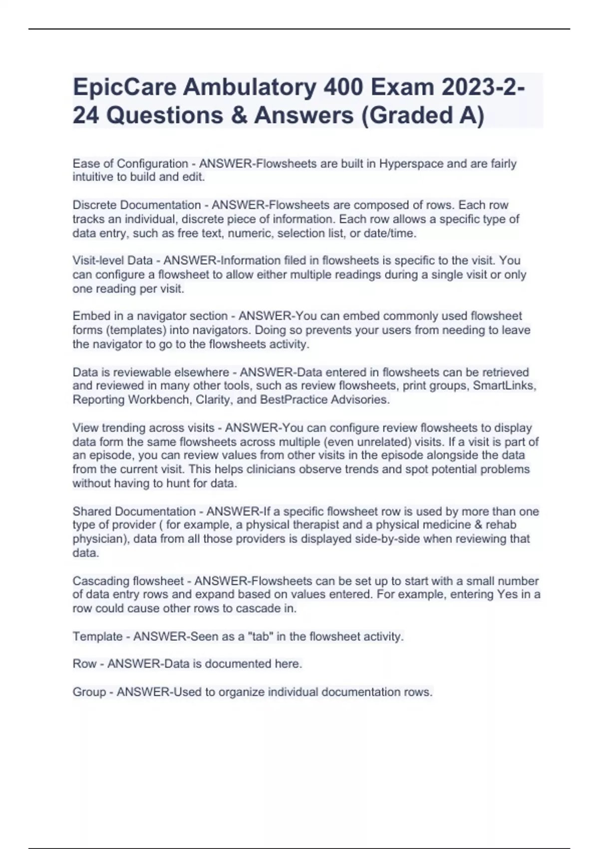 EpicCare Ambulatory 400 Exam 2023-2-24 Questions & Answers (Graded A)