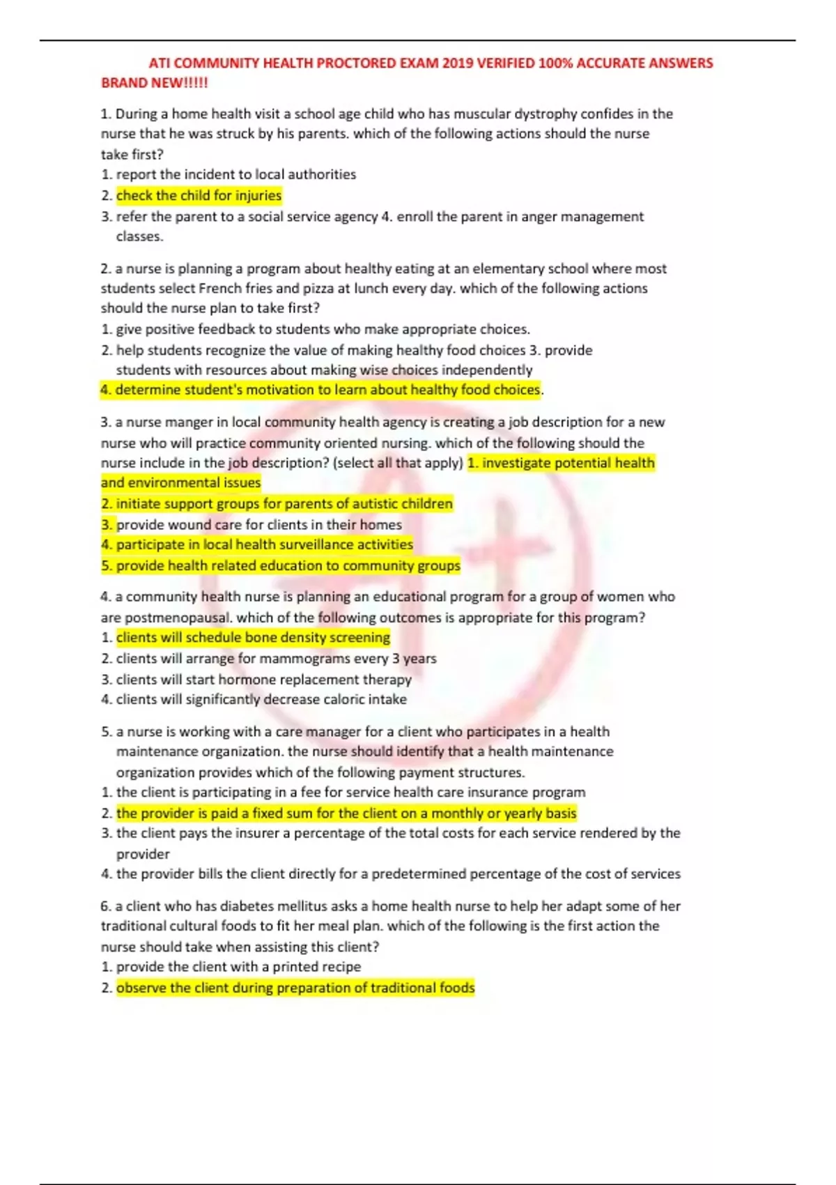 ATI COMMUNITY HEALTH PROCTORED EXAM 2023 VERIFIED 100% ACCURATE ANSWERS BRAND NEW!!!!!