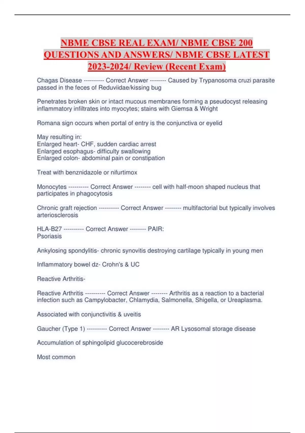 NBME CBSE REAL EXAM/ NBME CBSE 200 QUESTIONS AND ANSWERS/ NBME CBSE LATEST / Review (Recent Exam) GRADED A.