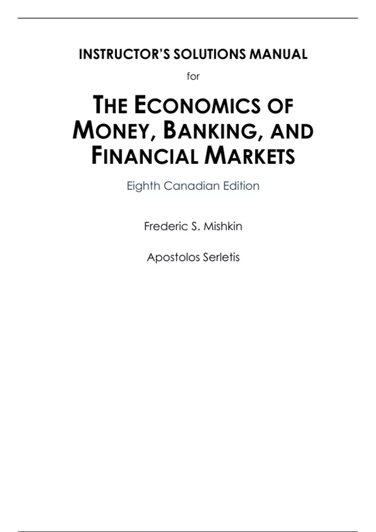 , Mishkin and Serletis • Instructor’s Manual for The Economics of Money, Banking, and Financial Markets, 8Ce 1–2