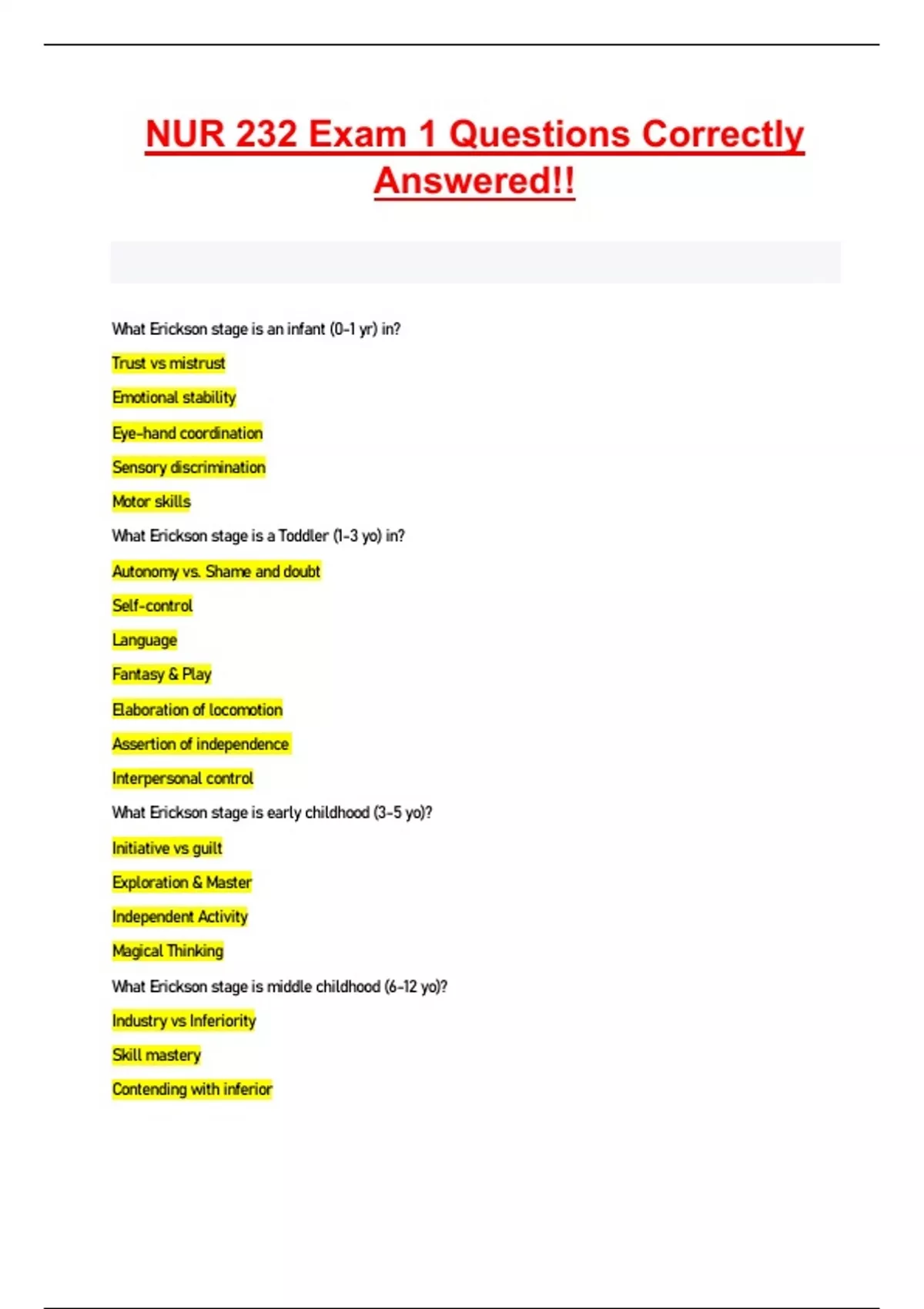 NUR 232 Exam 1 Latest Questions Correctly Answered!! graded A!!